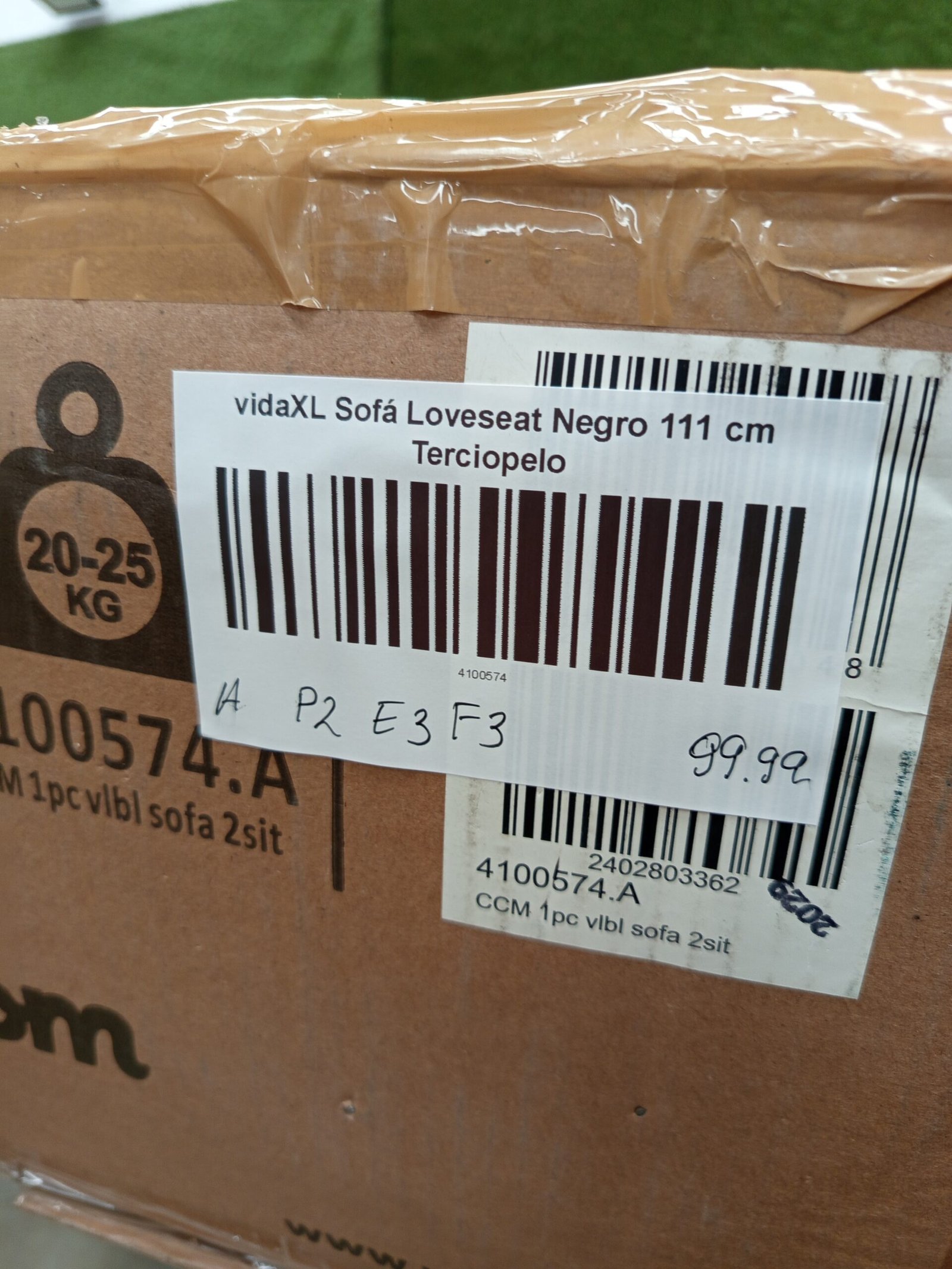 Sofá Loveseat de terciopelo negro vidaXL 111 cm 4100574