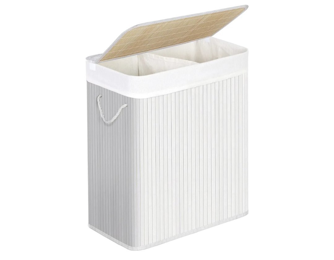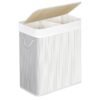 SONGMICS Cesto Ropa Sucia, 100 L, Cesta Colada 2 Clasificaciones, con Tapa, Bambú, con Asas, Plegable, Bolsa Interior Extraíble y Lavable a Máquina, para Lavandería, Dormitorio, Blanco LCB64WT