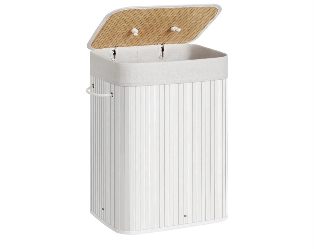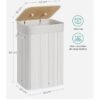 SONGMICS Cesto de la Ropa Sucia con Tapa, 72 L, Cesta de Lavandería de Bambú, Plegable, con Bolsa Lavable Extraíble, Asas, para Lavandería, Dormitorio, Blanco LCB010W01