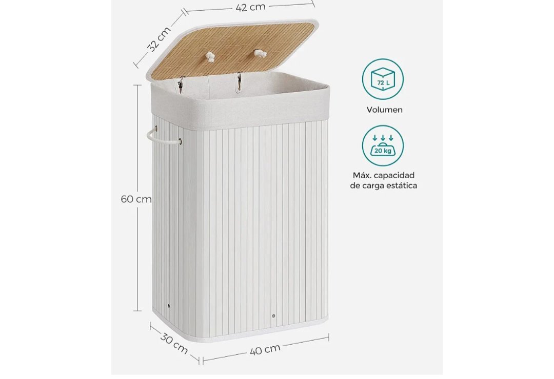 Hecho de bambú, estable y robusto: Este cesto está hecho de bambú natural. Gracias a las tiras de bambú de 17 mm de ancho, el cesto para la ropa es extremadamente robusto y estable y puede soportar hasta 10 kg