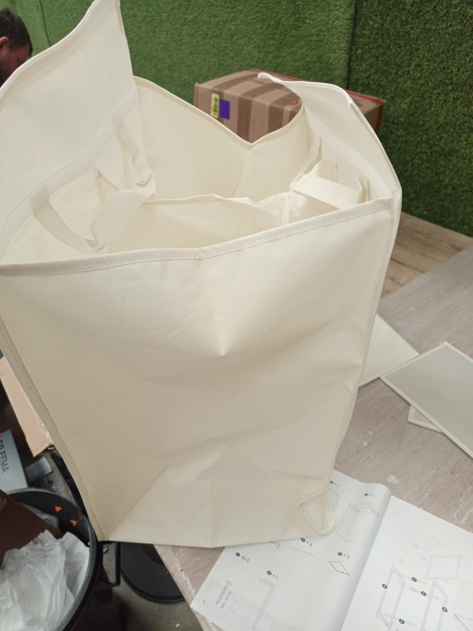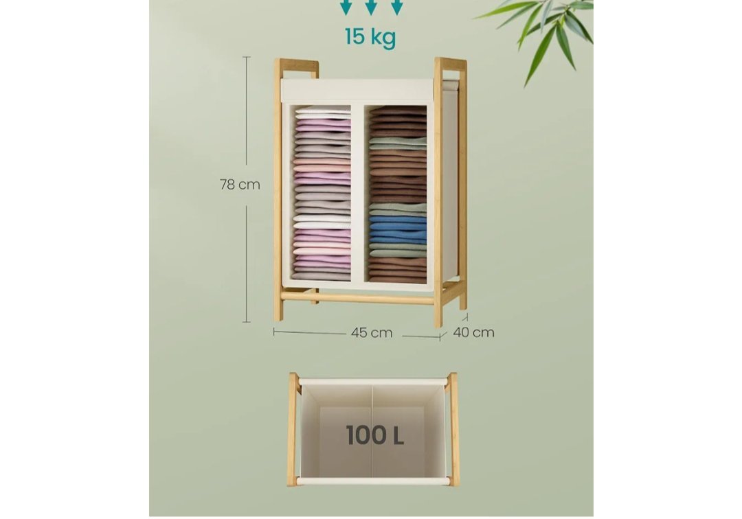 Este cesto de 2 compartimentos ofrece 100 L para ordenar la ropa y separar las prendas claras de las oscuras, facilitando tu día de lavado