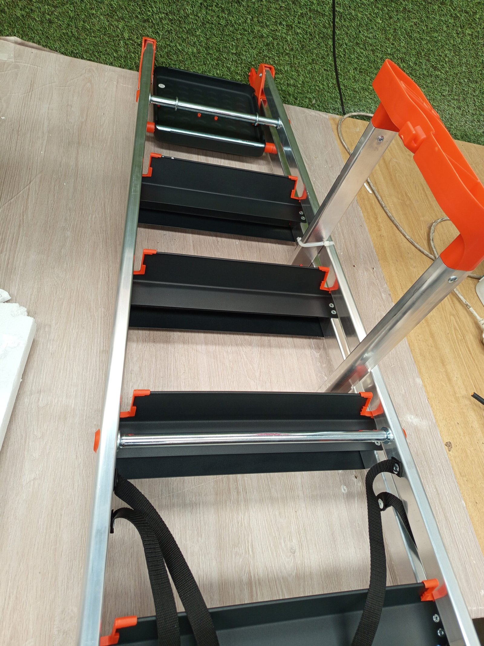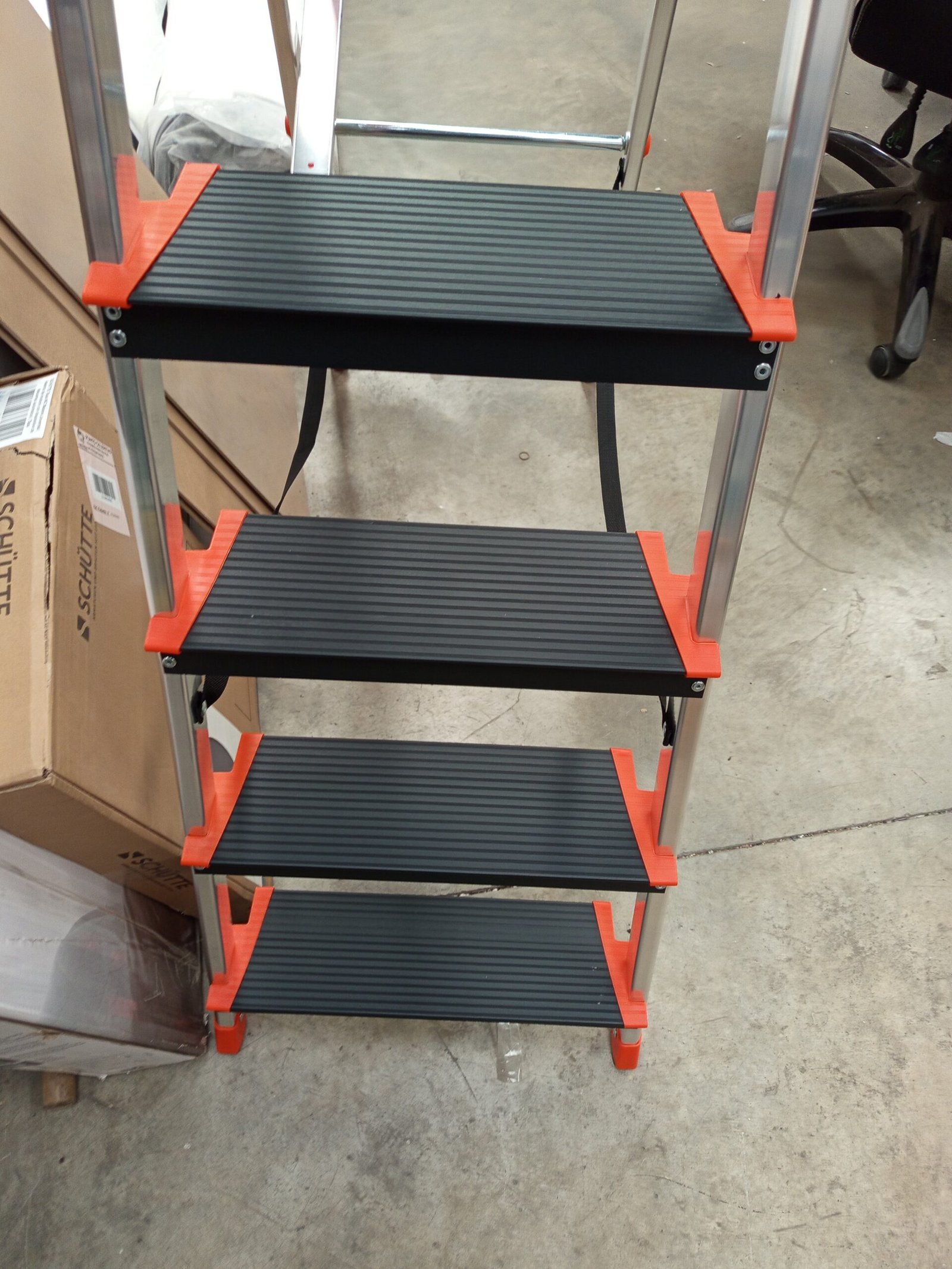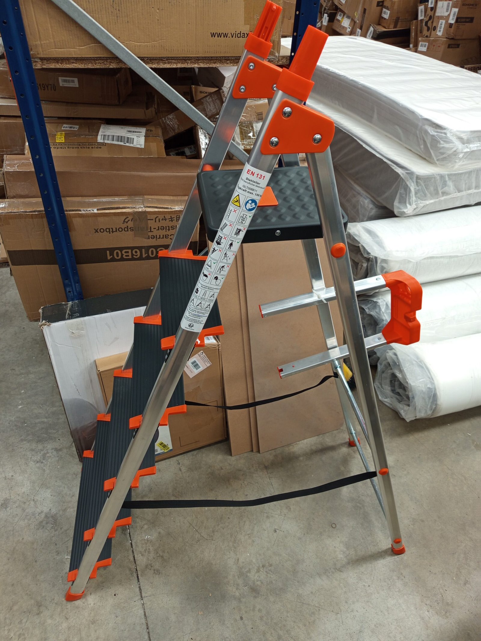 SONGMICS Escalera de 6 Peldaños, Escalera de Aluminio con Peldaños de 12 cm de Profundo, Plegable, Bandeja y Pies Antideslizantes, Carga de 150 kg, Negro y Naranja GLT06BK