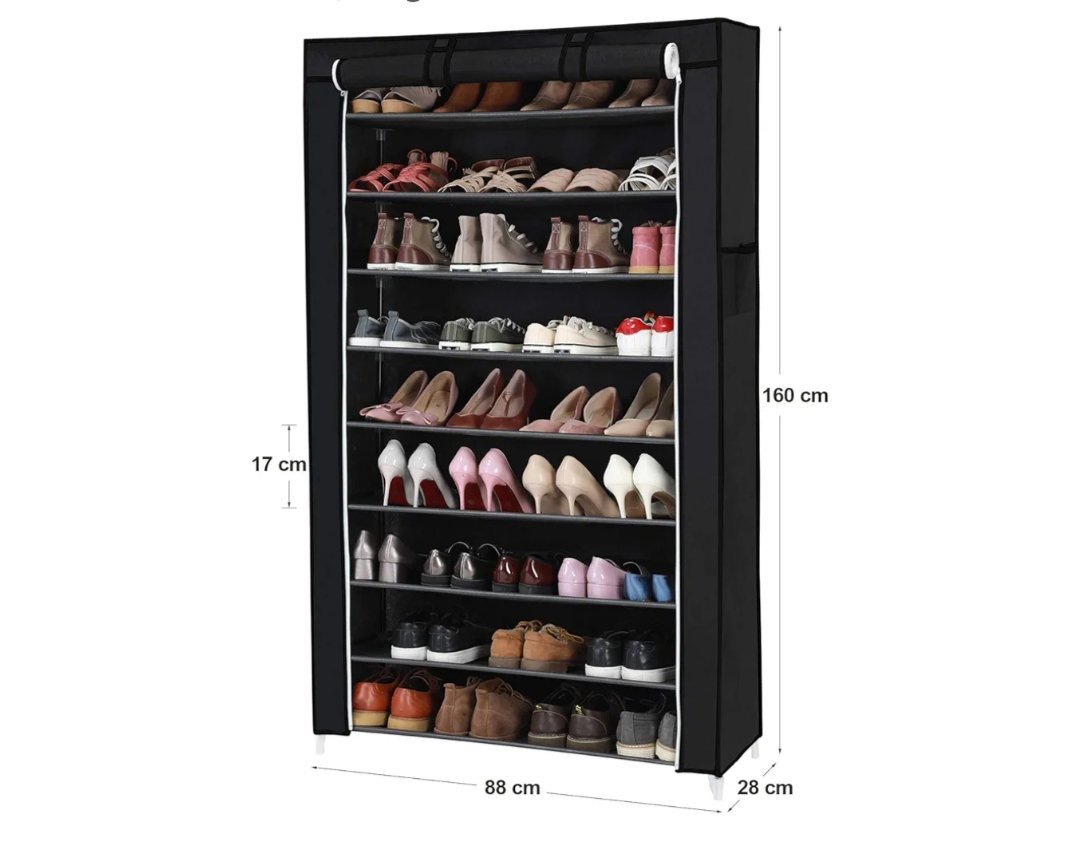 SONGMICS Estante para Zapatos de 10 niveles con Tapa Antipolvo, Armario para Guardar Zapatos, Organizador para Zapatos con Capacidad para 40 Pares de Zapatos, 88 x 28 x 160 cm, Negro RXJ36H