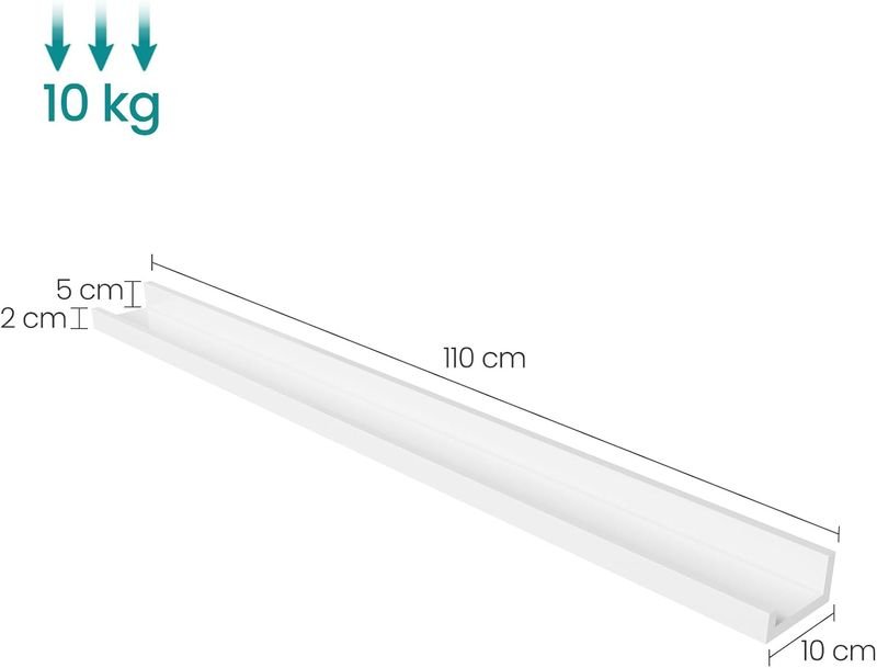 SONGMICS – Estantería de Pared, decoración de salón, Acabado Brillante, 10 x 110 cm, para Marcos, Libros, Sala de Estar, Dormitorio, baño, Cocina, Oficina, Blanco LWS46WT