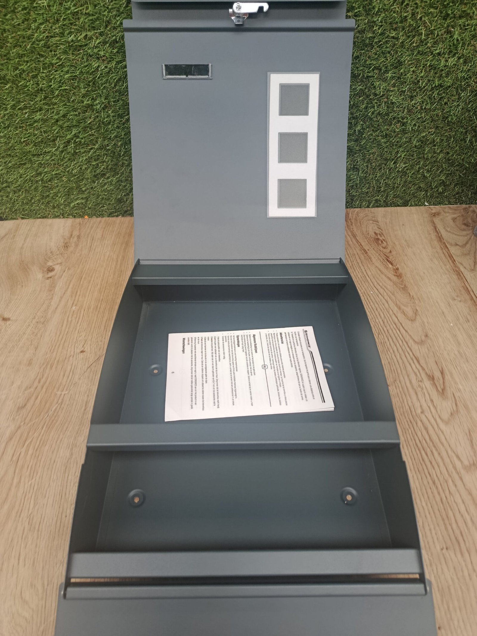 SONGMICS Buzón de Pared, con Ventanas de visualización, Ranura para Nombre, 2 Llaves, fácil de Instalar, Gris Antracita GMB030G02