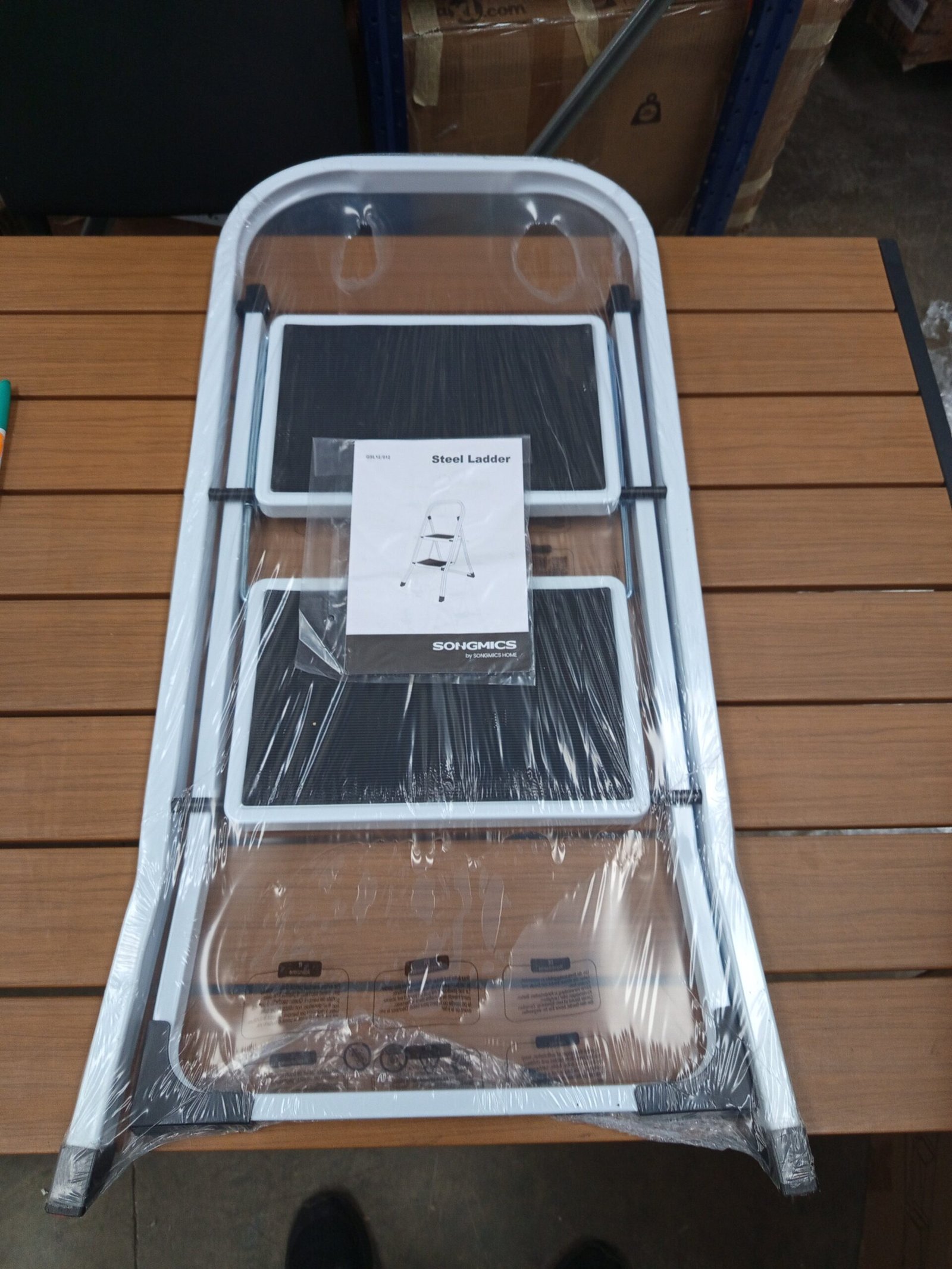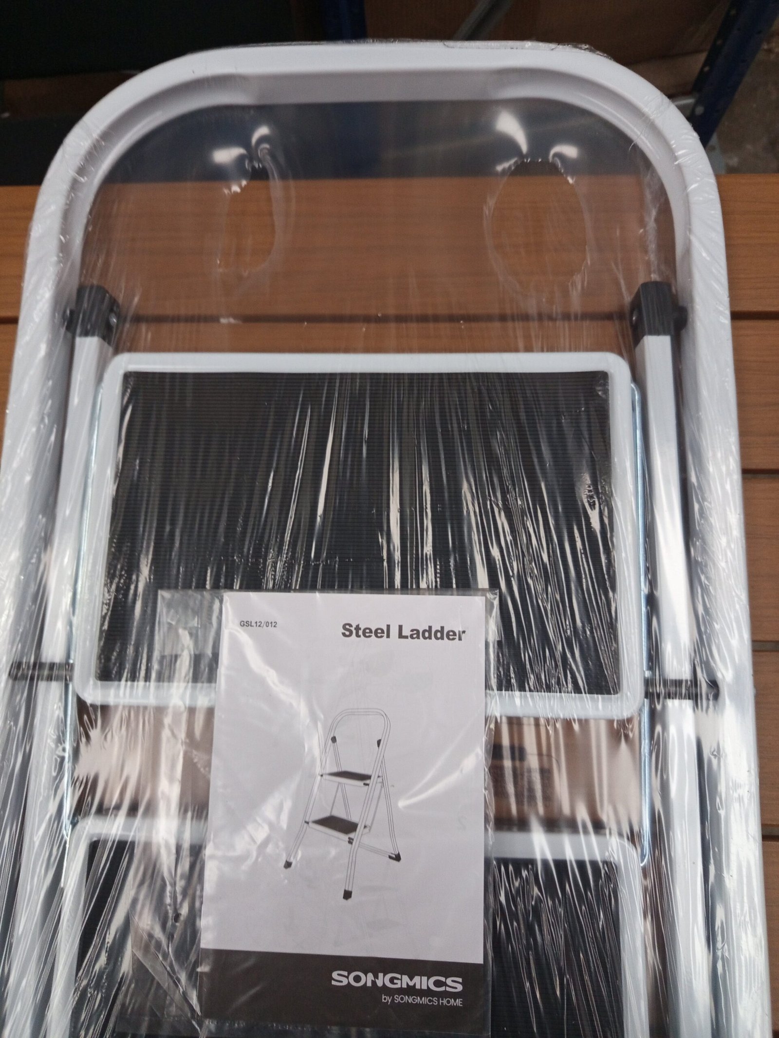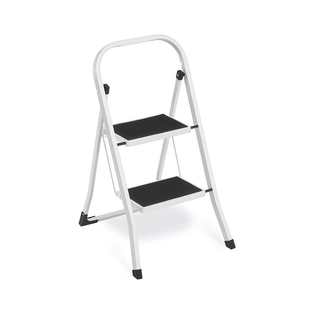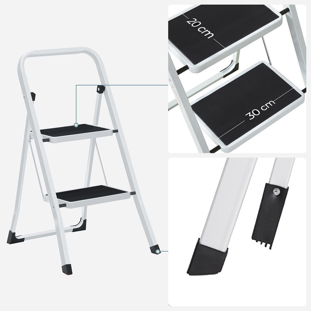 SONGMICS Escalera Plegable con 2 Peldaños Blanco Simple Tamaño: 2 PeldaÑos (55 x 45,5 x 82 cm)Con sólo 4 cm de estrecho cuando está plegada, puede colocarse incluso en las esquinas o huecos entre paredes y armarios; con un asa, el peldaño plegable (4,3 kg) es muy práctico de transportar