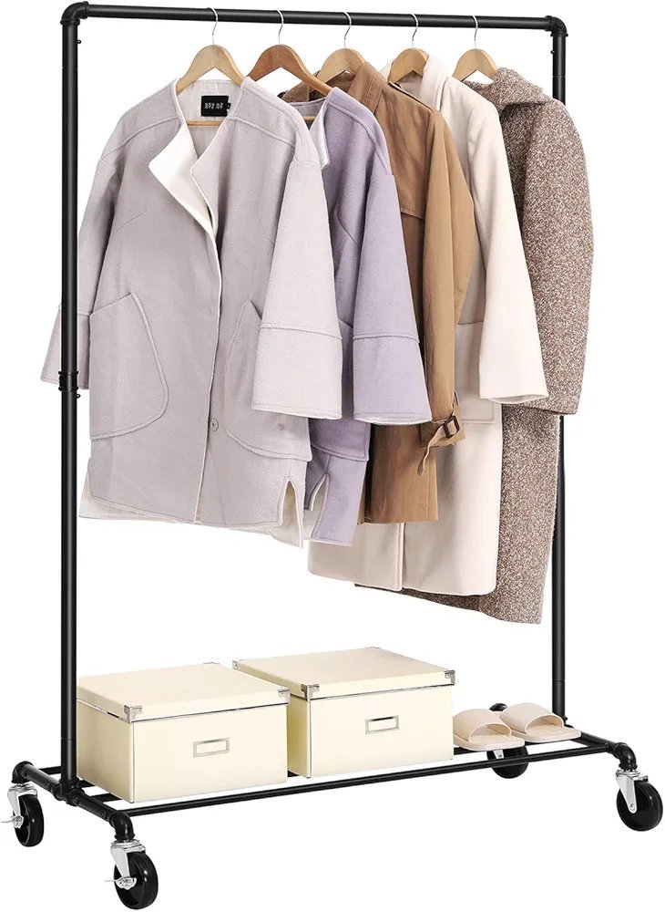 Perchero SONGMICS con ruedas, perchero para ropa, capacidad de carga de 90 kg con riel y estante, estilo industrial, para dormitorio, lavadero, negro HSR61BK