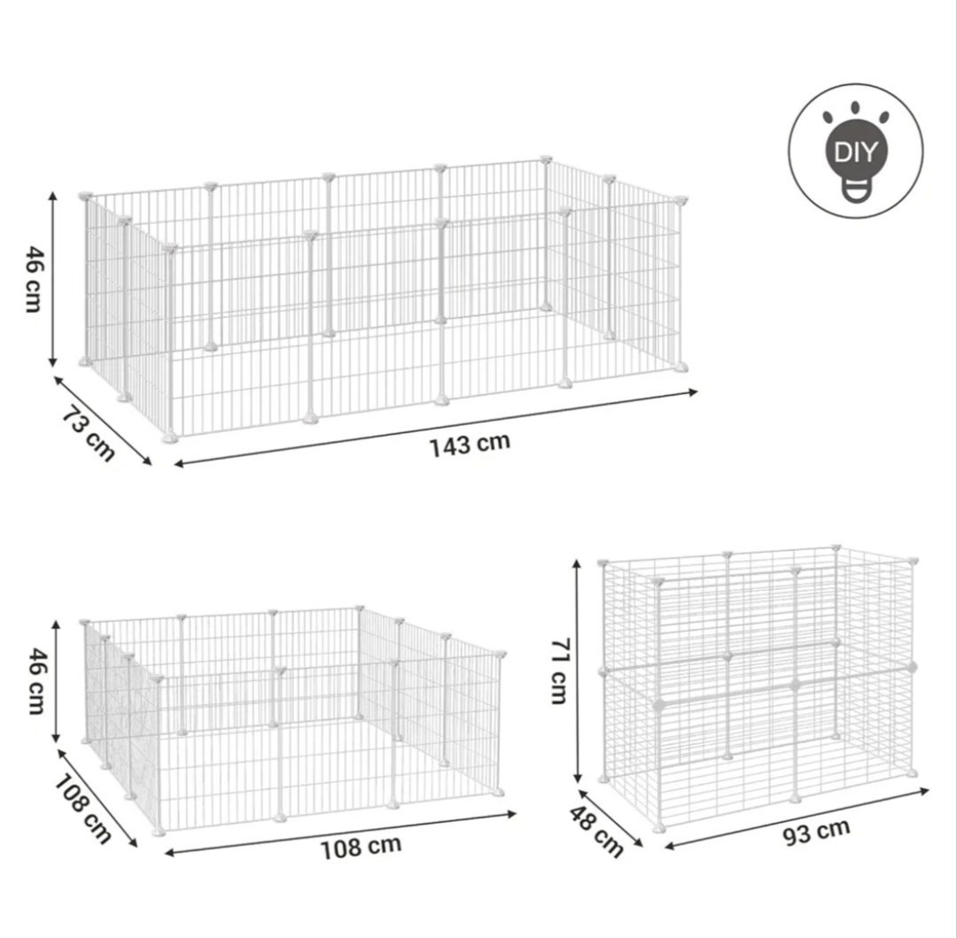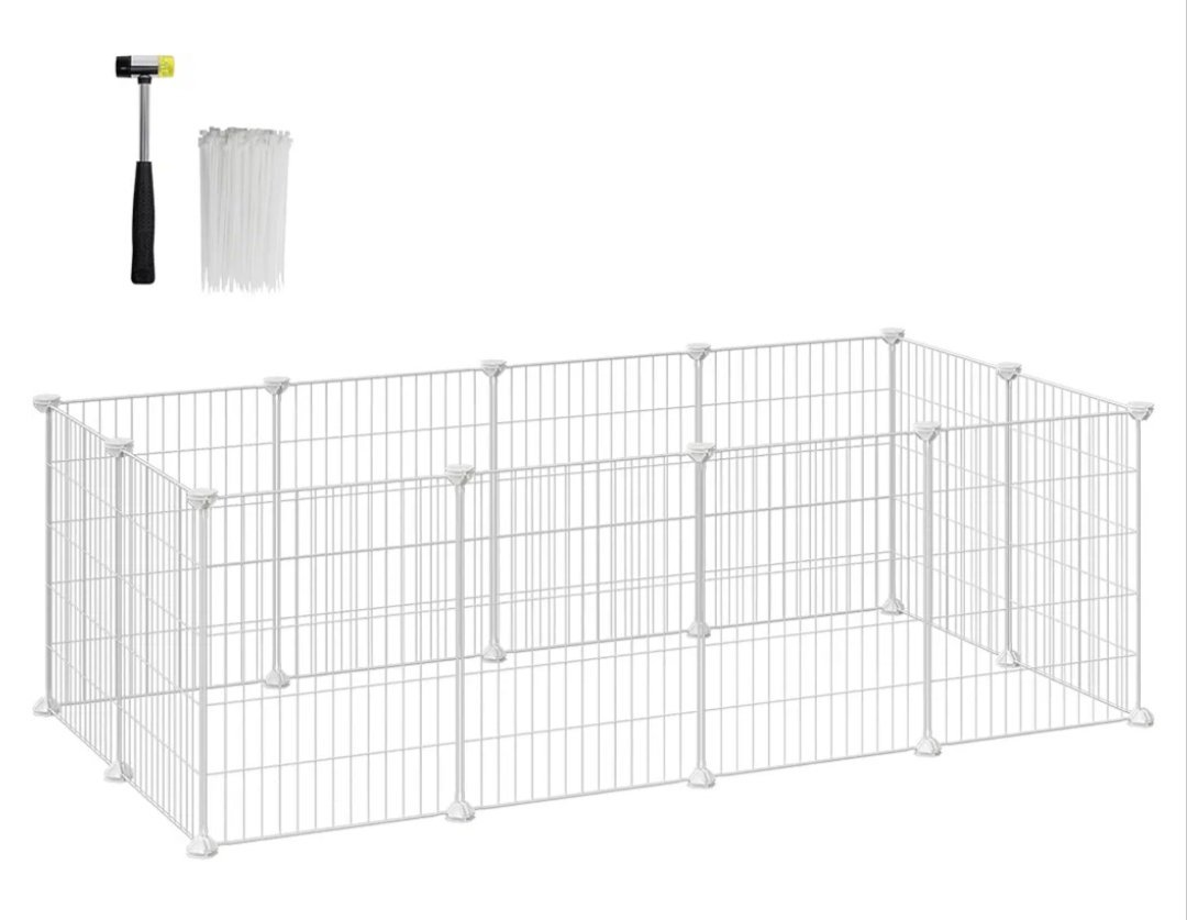 SONGMICS Jaula para Mascotas, Valla MetÁlica para HÁmster, Conejitos, Parque de Mascotas en Bricolaje, para Animalitos, Blanco LPI01W