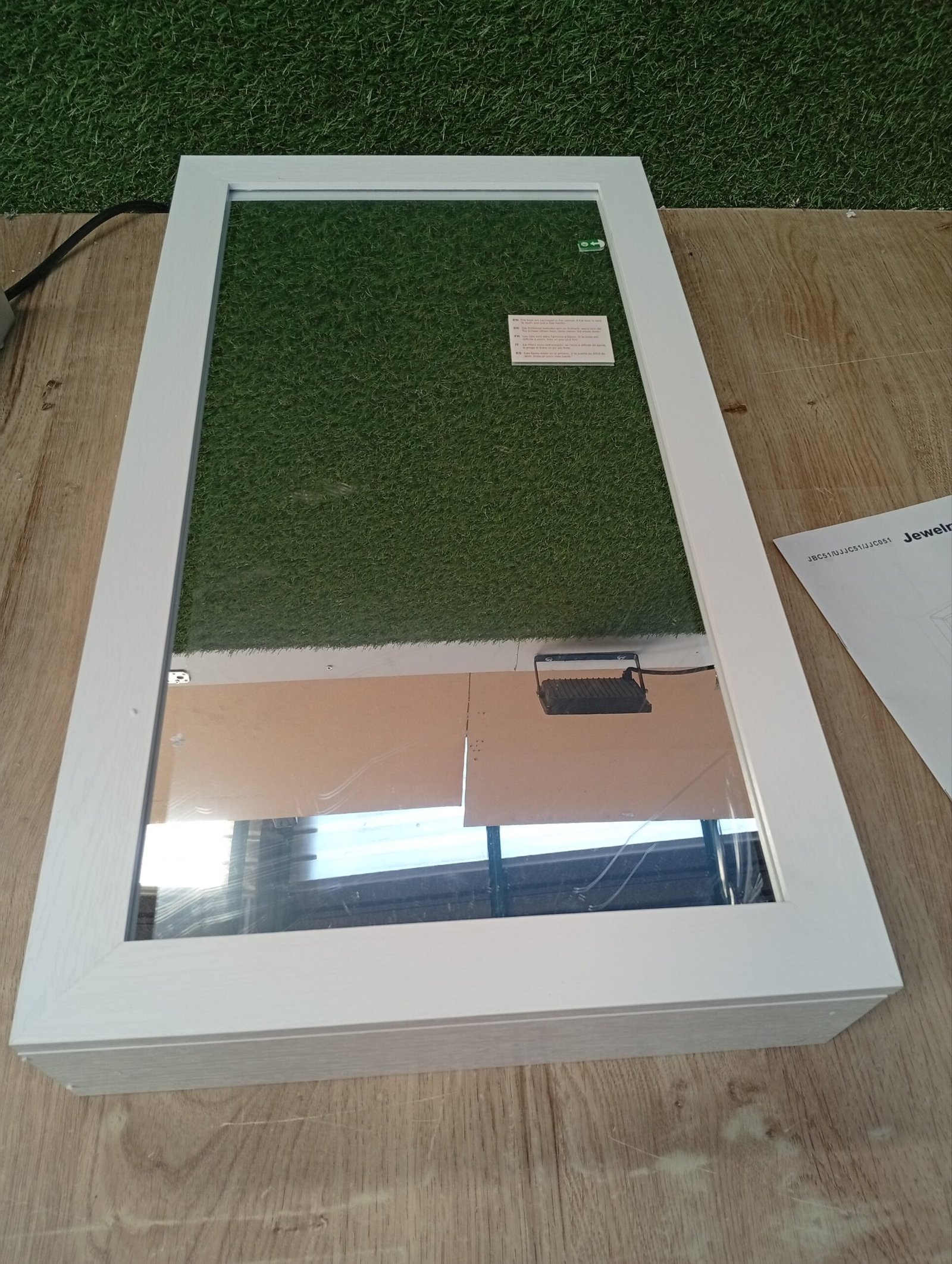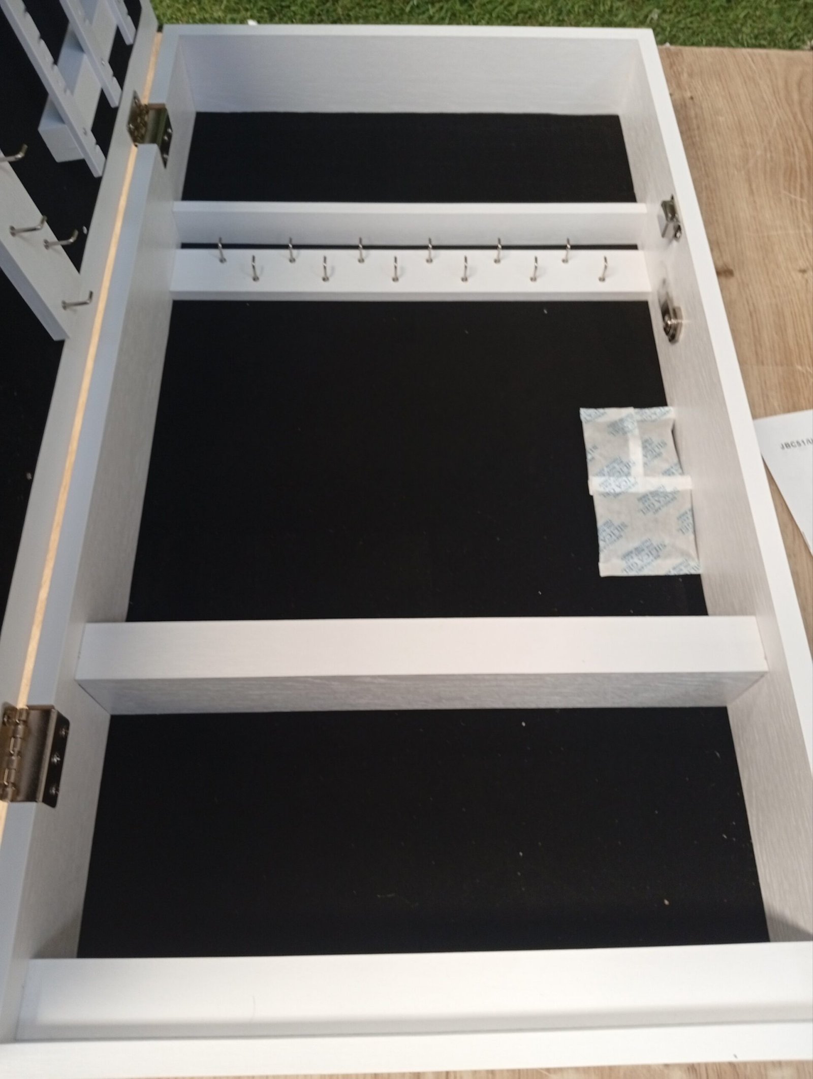 [¿Espejo? ¿Gabinete? ¡Ambos!] ¡Deja de corretear por la casa buscando un espejo! Con este oraganizador de joyas 2 en 1, sólo coge los accesorios del gabinete, y la puerta del espejo te dirá cuál es la pieza perfecta que te hará despampanante hoy