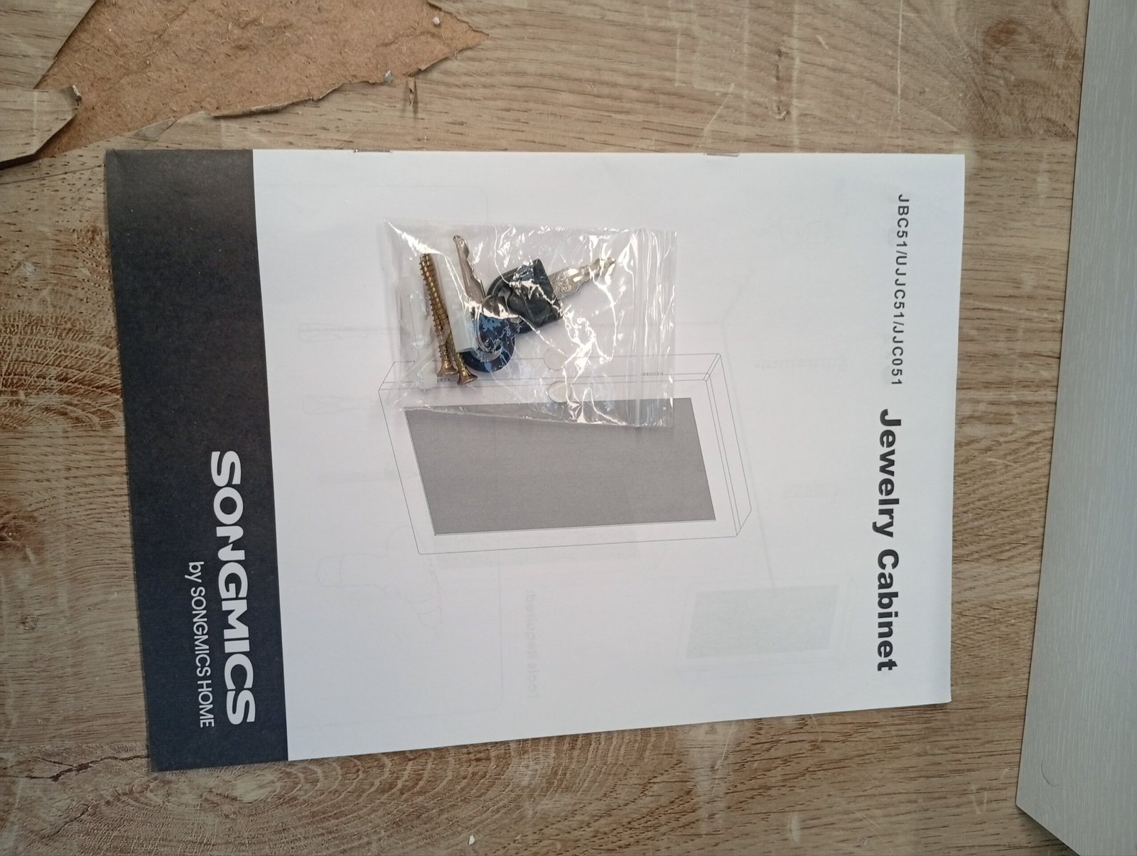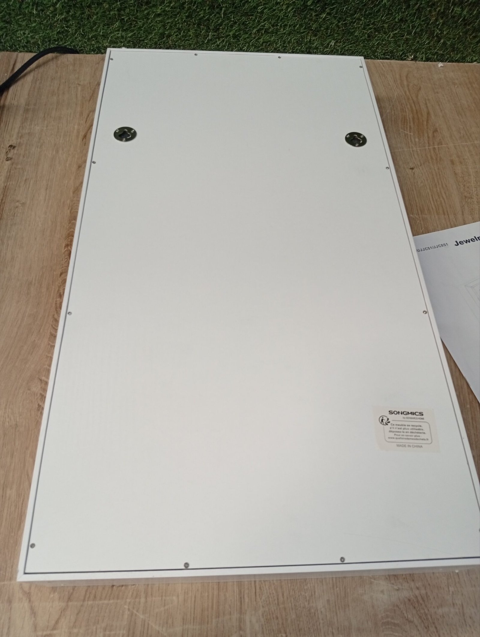 SONGMICS Armario Joyero de Pared, Armario de Joyas con Espejo, Organizador de Joyas para Ahorrar Espacio, Superficie Blanca y Forro Negro JBC51W