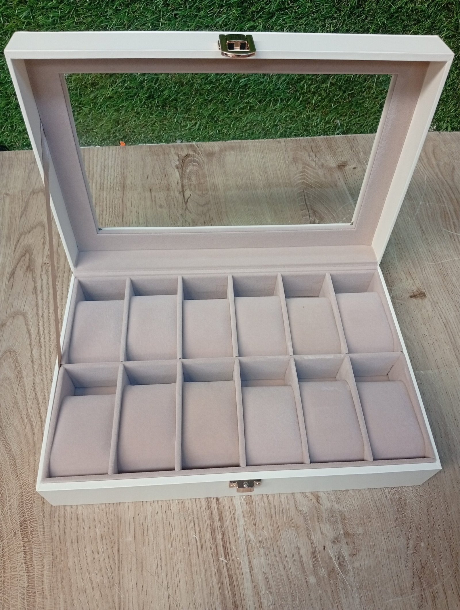 [Tapa de cristal transparente] Basta con echar un vistazo a través de la tapa de cristal transparente de esta caja para acceder rápidamente al reloj que necesita; además, la tapa es duradera y fácil de limpiar