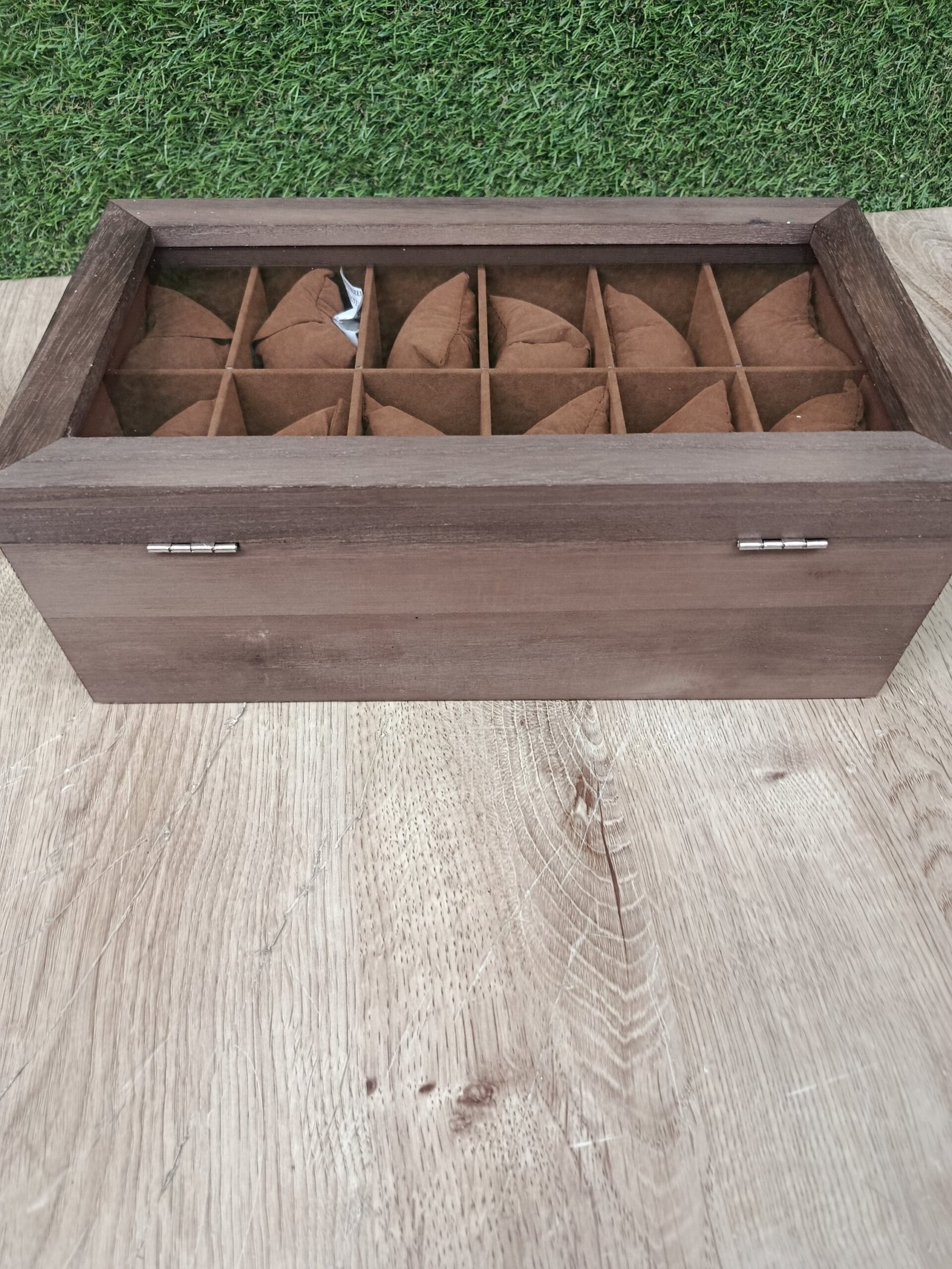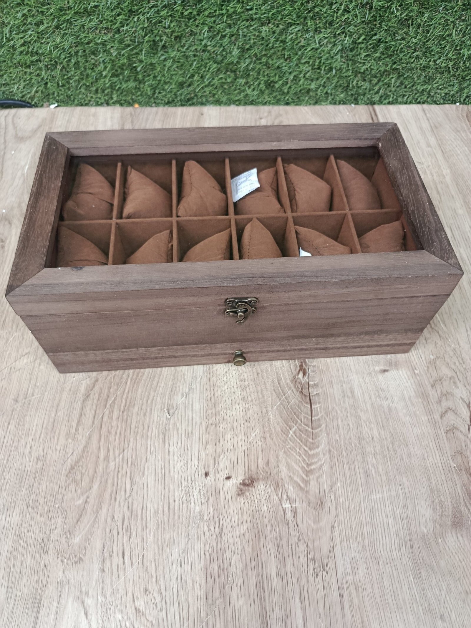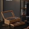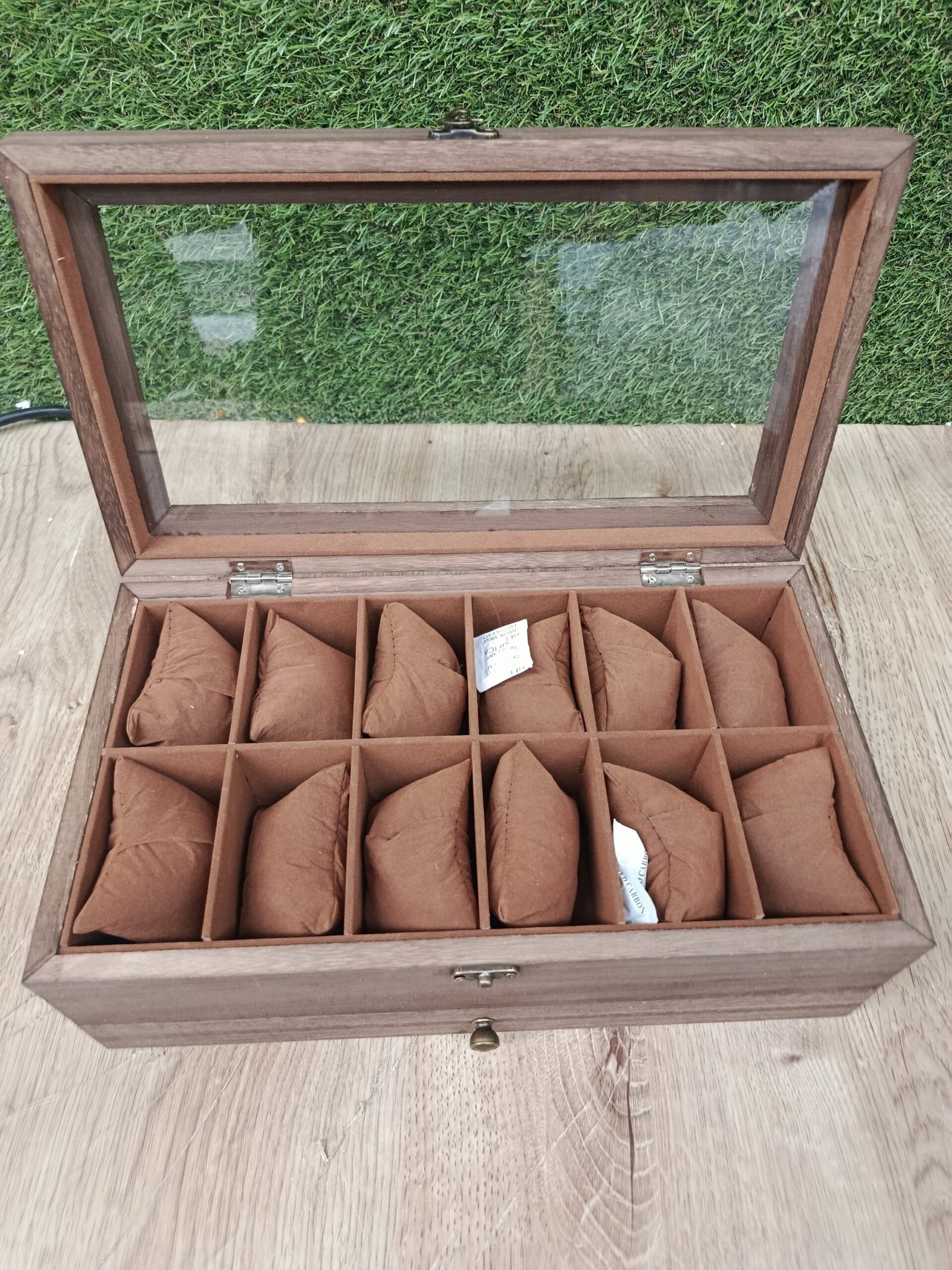 [Clásico y rústico] Con su superficie de madera y su tapa de cristal, esta caja de relojes no sólo sirve para guardarlos, sino también para exhibir tu colección de relojes y decorar tu casa
