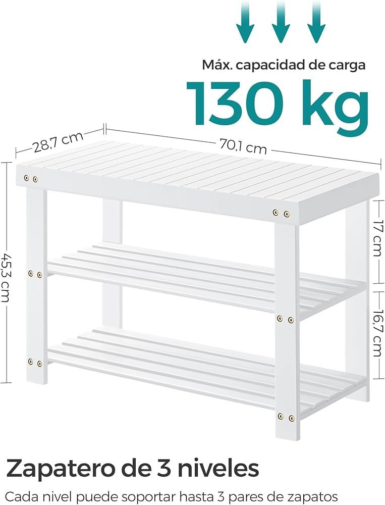 SONGMICS Banco Zapatero, Organizador de Zapatos de Bambú de 3 Niveles, Carga hasta 130 kg, para Entrada, Baño, Dormitorio, Blanco Nube LBS090W01