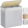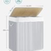 Con tapa y listón ancho de bambú: La tapa del cesto de la ropa sucia se abre y cierra con una sola mano para evitar que salga mal olor de ropa sucia y alejar del polvo; los listones de bambú anchos de 17 mm son duraderos y estables con carga máx. de 20 kg