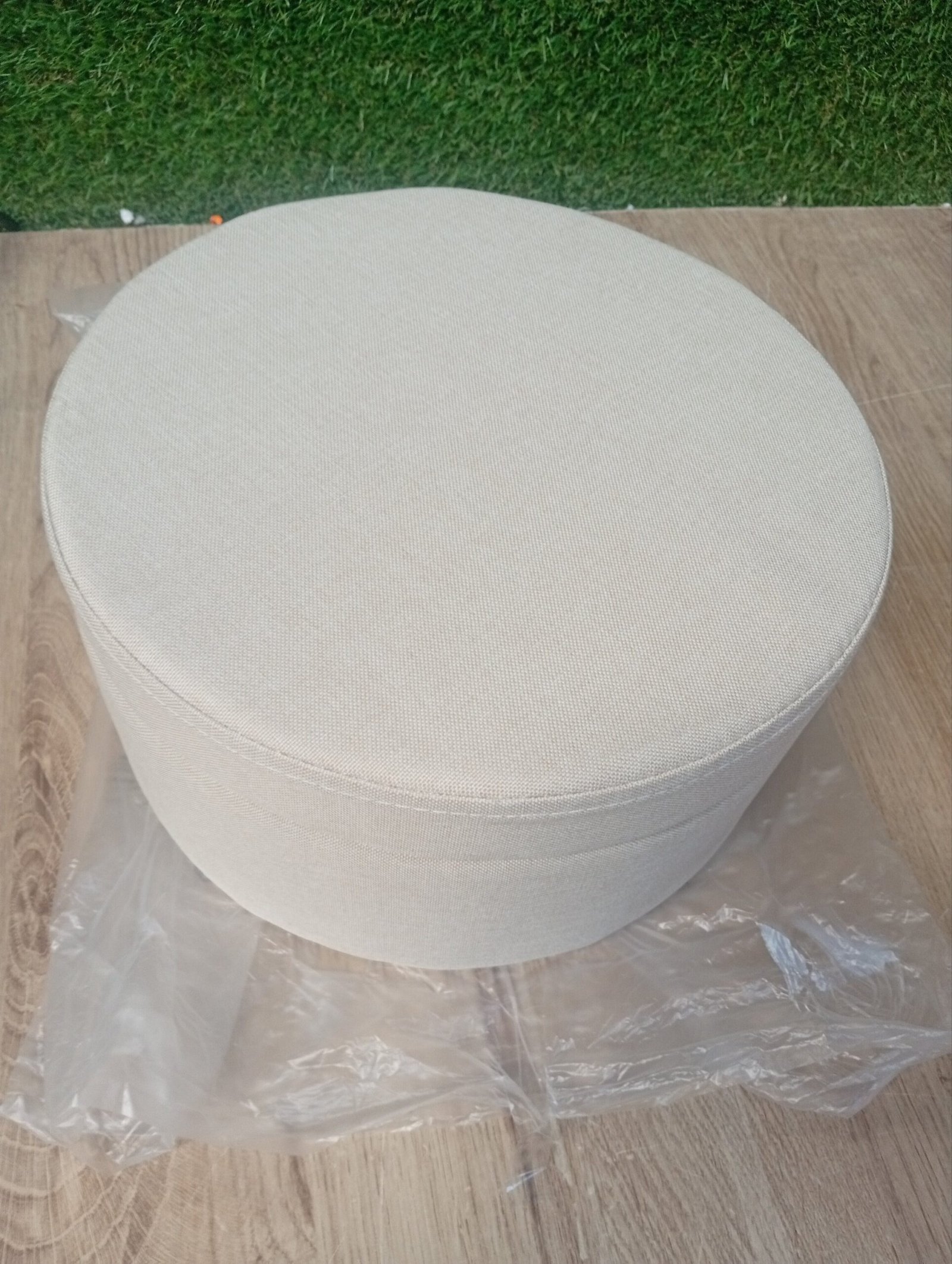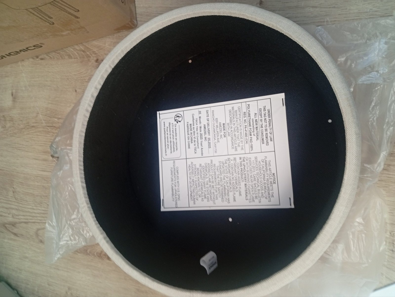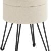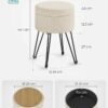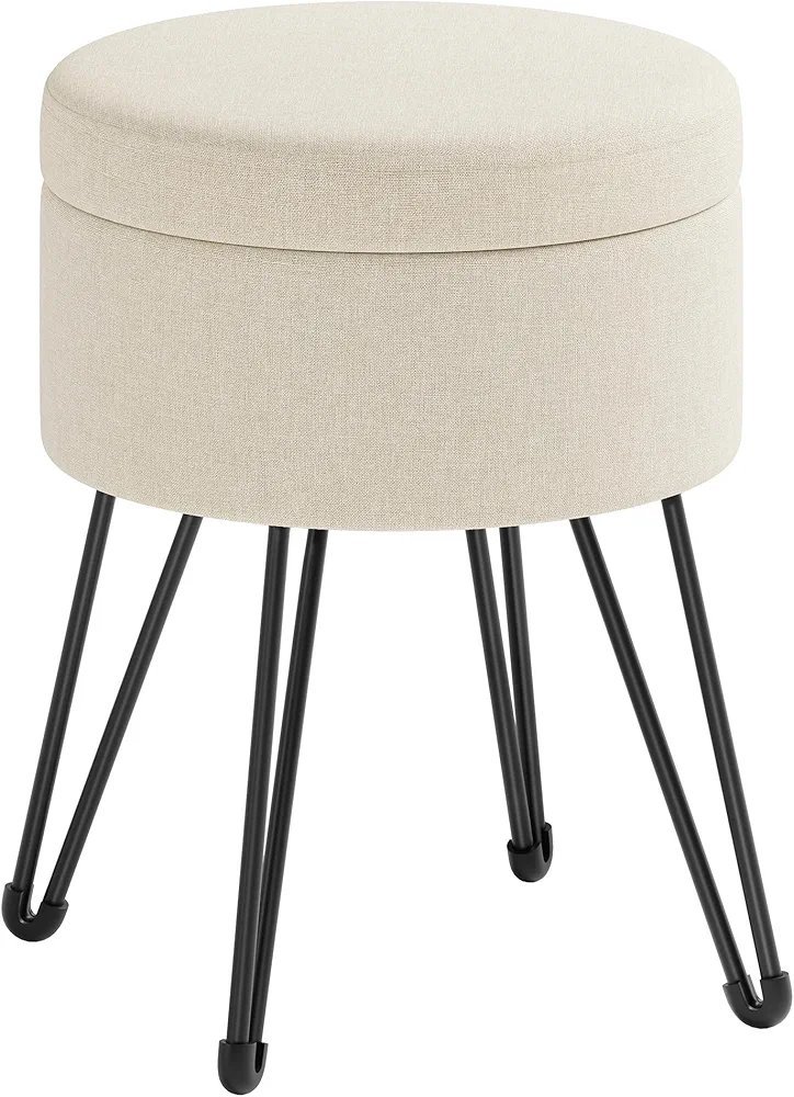 SONGMICS Puff Almacenaje, Baul Almacenaje, Banco Almacenaje Redondo, Taburete de Tocador, 39 x 44,1 cm, 4 Patas de Metal, Asiento Acolchado, Blanco Crema LOM002W01