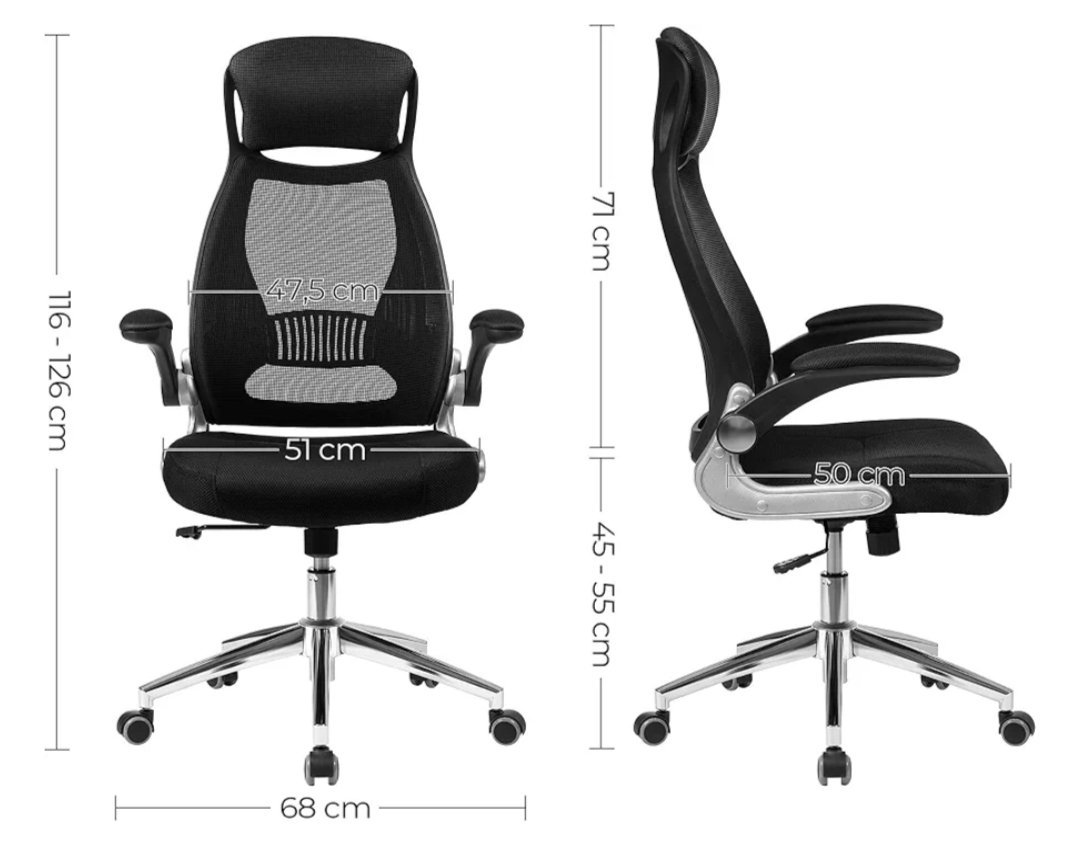 SONGMICS OBN86BK Silla giratoria de Oficina Silla de Escritorio de Malla con reposacabezas Mecanismo sincronizad y Altura Ajustable Negro