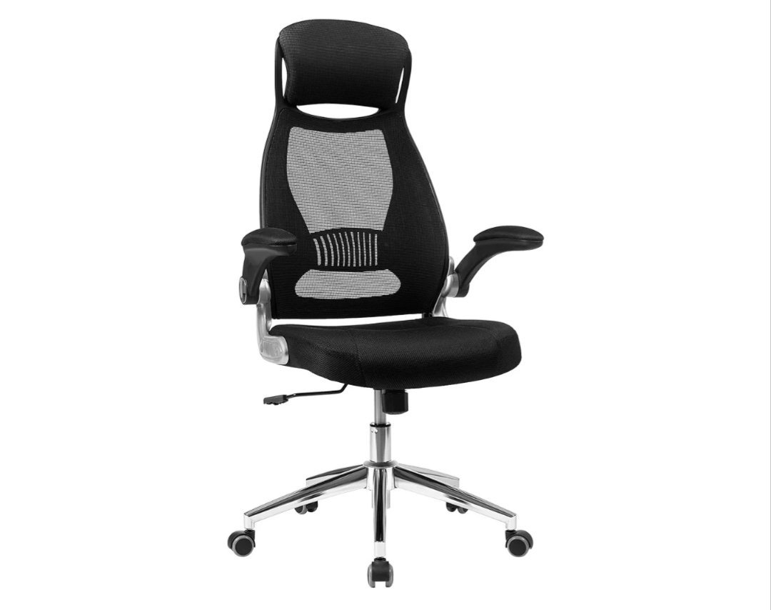 SONGMICS OBN86BK Silla giratoria de Oficina Silla de Escritorio de Malla con reposacabezas Mecanismo sincronizad y Altura Ajustable Negro