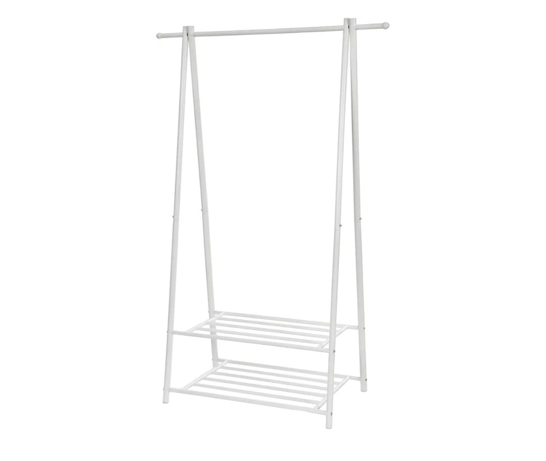 SONGMICS Perchero con Estante de 2 Niveles para Zapatos y Cestas, Estructura Metálica, Ahorra Espacio, Ideal para Dormitorio, Entrada, Oficina y Más, Blanco Cremoso HSR05W