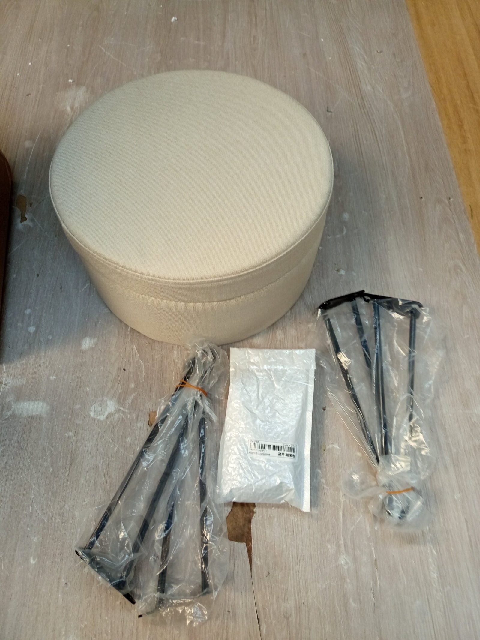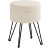 SONGMICS Puff Almacenaje, Baul Almacenaje, Banco Almacenaje Redondo, Taburete de Tocador, 39 x 44,1 cm, 4 Patas de Metal, Asiento Acolchado, Blanco Crema LOM002W01