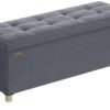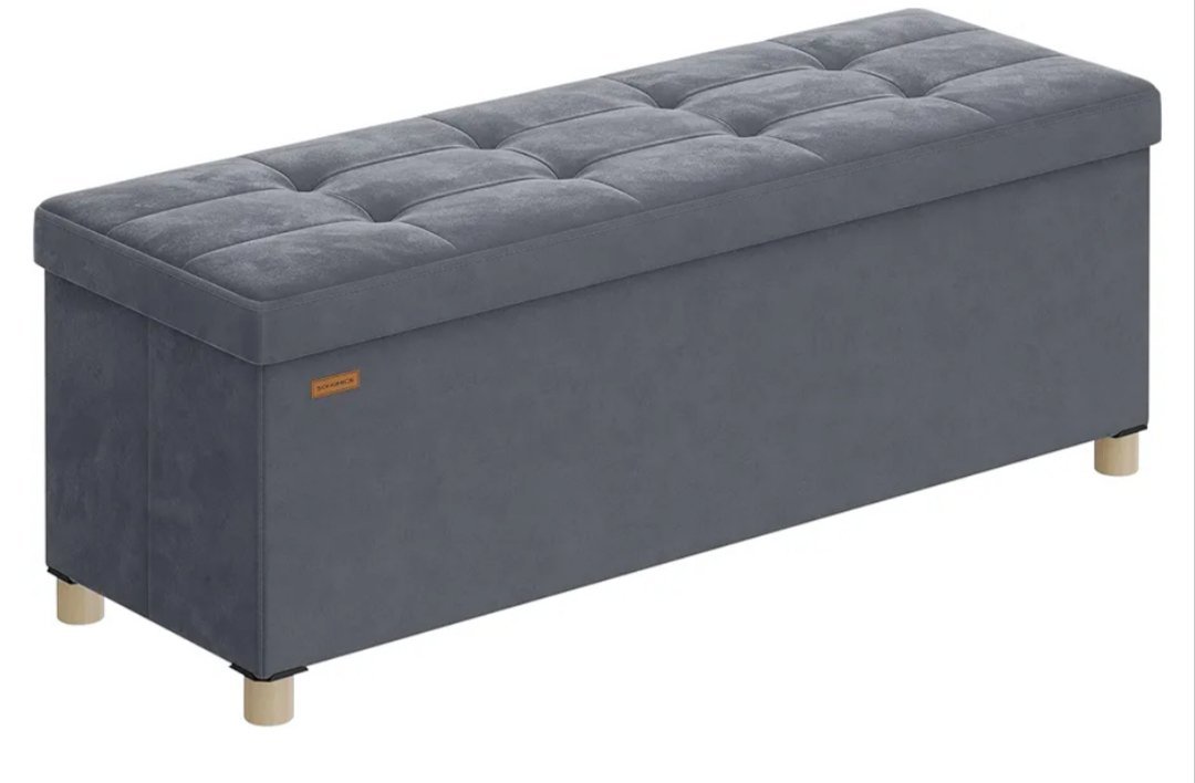 SONGMICS Puff Almacenaje, Banco Plegable, 38 x 110 x 40 cm, Reposapiés, 112 L, Superficie de Terciopelo, para Dormitorio, Sala de Estar, Dormitorio, Gris Pizarra LSF0518G02