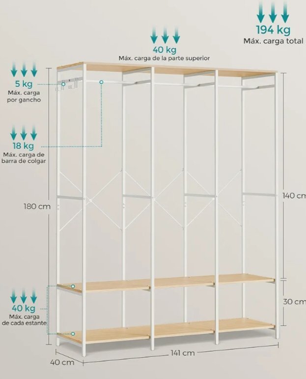 [Construido para durar] Fabricado con una resistente estructura metálica y grueso aglomerado, y reforzado con barras en X posteriores, este perchero soporta hasta 194 kg con facilidad. No dudes en colgar en él incluso tus pesadas chaquetas de invierno