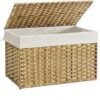 SONGMICS Cesto de Ropa Sucia, Cesta de Ratán Sintético 105 L con Tapa y Asas, Mimbre, Plegable, Forros Extraíbles, para Mantas, Ropa, Dormitorio, Baño, Lavandería, Amarillo Ganso RST066N01