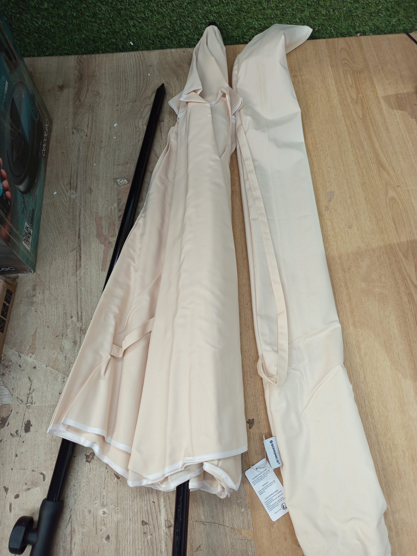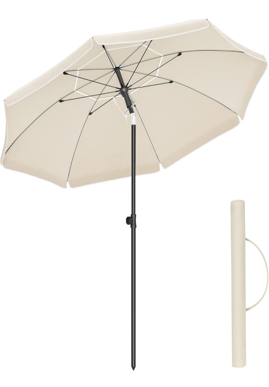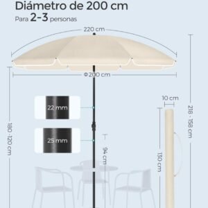 SONGMICS Sombrilla de 200 cm, UPF 50+, Inclinación Bidireccional de 30°, Altura Ajustable, con Bolsa de Transporte, para Balcón Jardín Terraza Playa, sin Base, Beige