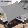 SONGMICS Vela de Sombra de 3 x 4 m, Tejido HDPE de Protección Solar, Transpirable, Permeable al Agua, Terraza, Jardín, Balcón, Camping, Rectangular, Cóncava, Cuerdas de 2 m, Gris Claro GSS34QY