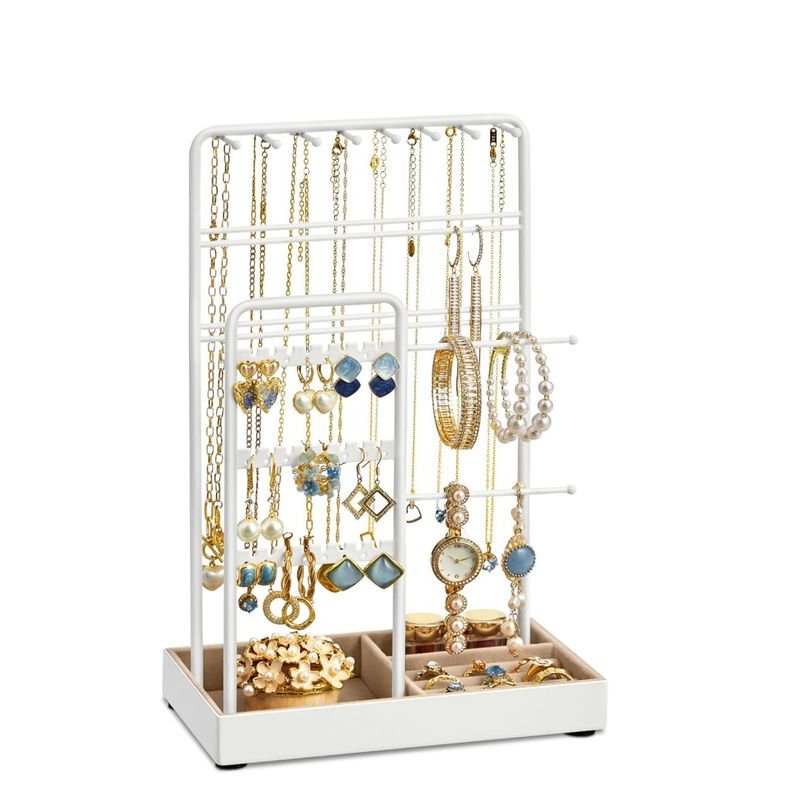 SONGMICS Soporte para Joyas, Organizador de Joyas, Expositor de Joyas, Marco de Metal, Bandeja de Terciopelo, para Collares, Pulseras, Anillos, Regalo, Blanco Mate JJS021W01