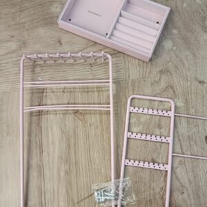 SONGMICS Soporte para Joyas, Organizador de Joyas, Expositor de Joyas, Marco de Metal, Bandeja de Terciopelo, para Collares, Pulseras, Anillos, Regalo, Rosa Jalea JJS021R01