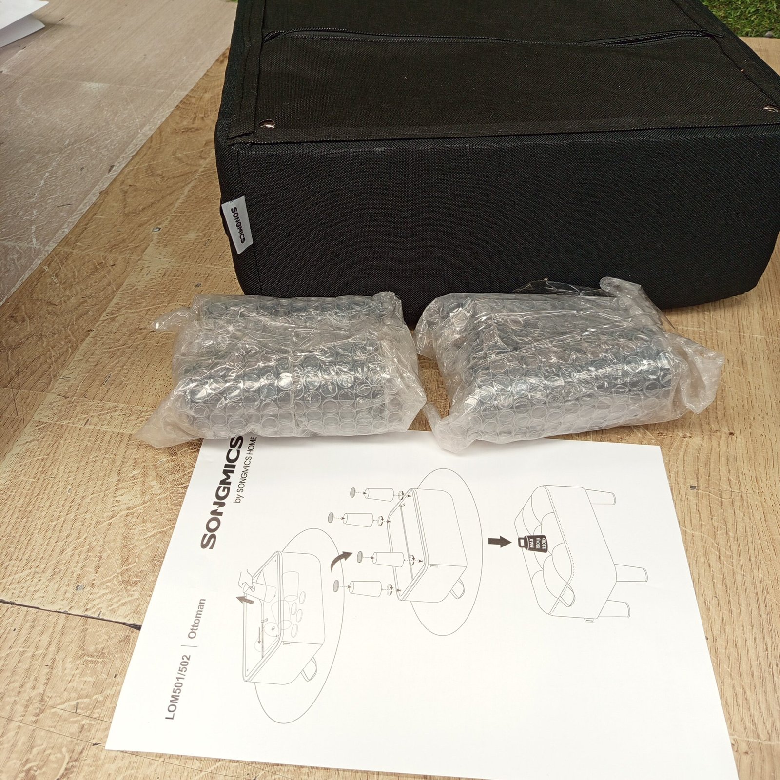 SONGMICS Taburete, Reposapiés, Imitación Lino, Acolchado Grueso, Carga hasta 150 kg, para Salón Dormitorio Entrada, Negro Tinta LOM502B01