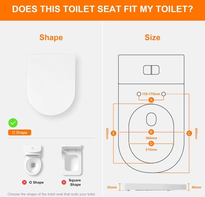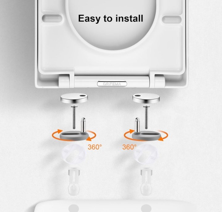 GRIFEMA G951 – Tapa WC, Asiento de Inodoro de Cierre Suave en Forma de D con Liberación Rápida para una Fácil Limpieza, Blanco