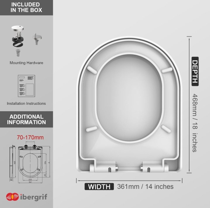 Ibergrif M41001 Tapa wc, Asiento de Inodoro de Cierre Suave en Forma de D con Liberación Rápida para una Fácil Limpieza, Blanco