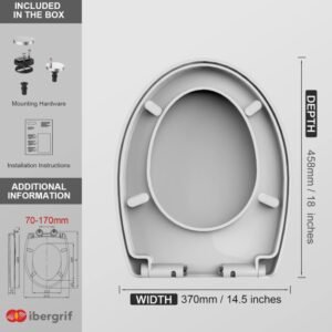 Ibergrif M41002 Tapa wc, Asiento de Inodoro de Cierre Suave en Forma de O con Liberación Rápida para una Fácil Limpieza, Blanco