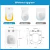 Este asiento de inodoro destaca por su fabricación de alta calidad y bisagras de acero inoxidable resistentes a la corrosión, asegurando una instalación segura y sin tambaleos, además de una larga durabilidad. Se monta fácilmente con un destornillador estándar.