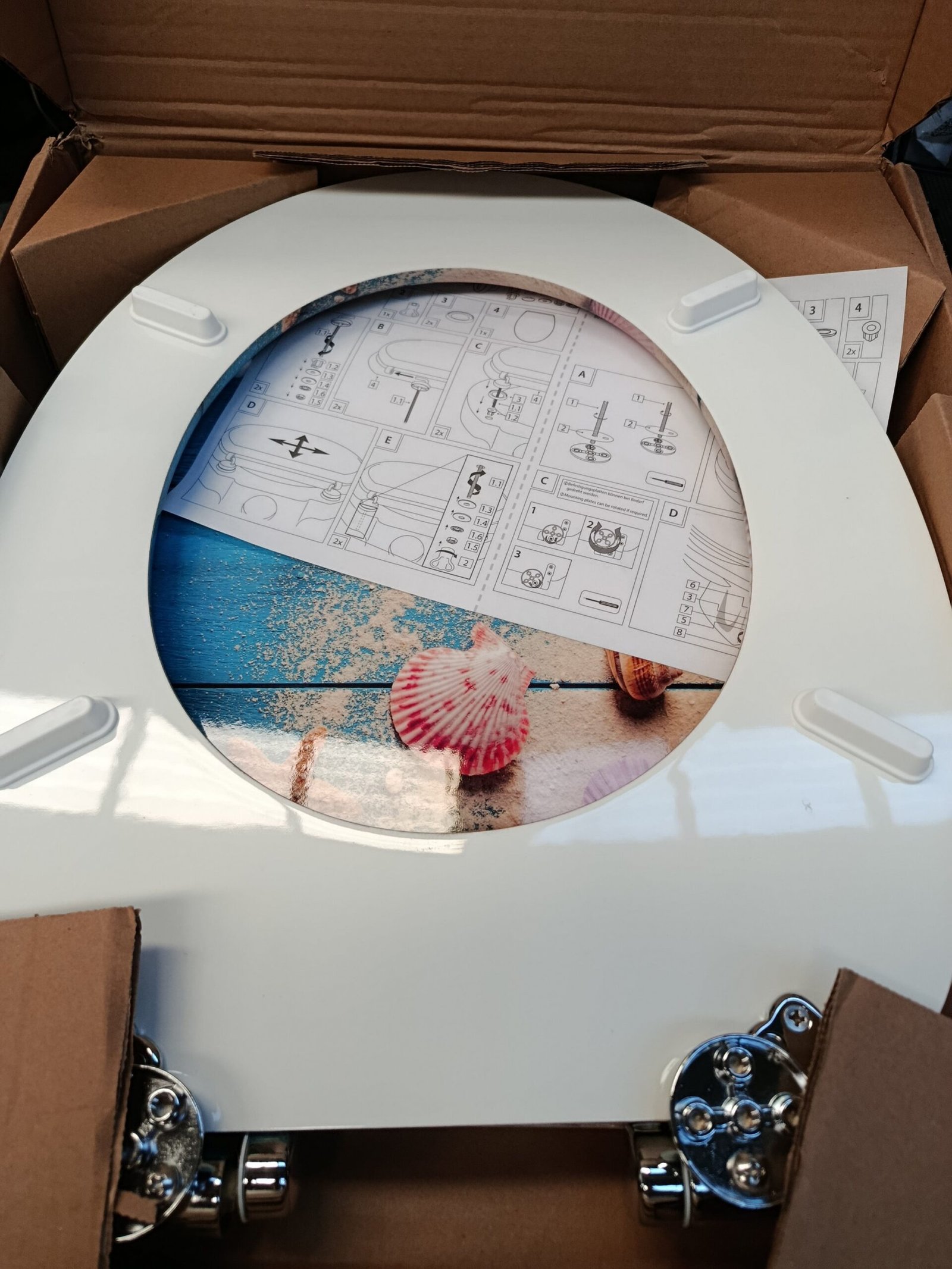 El kit de montaje incluido con todos los componentes necesarios, así como las instrucciones de montaje en alemán, hacen que la instalación de la tapa del inodoro con diseño sea muy fácil para ti.
