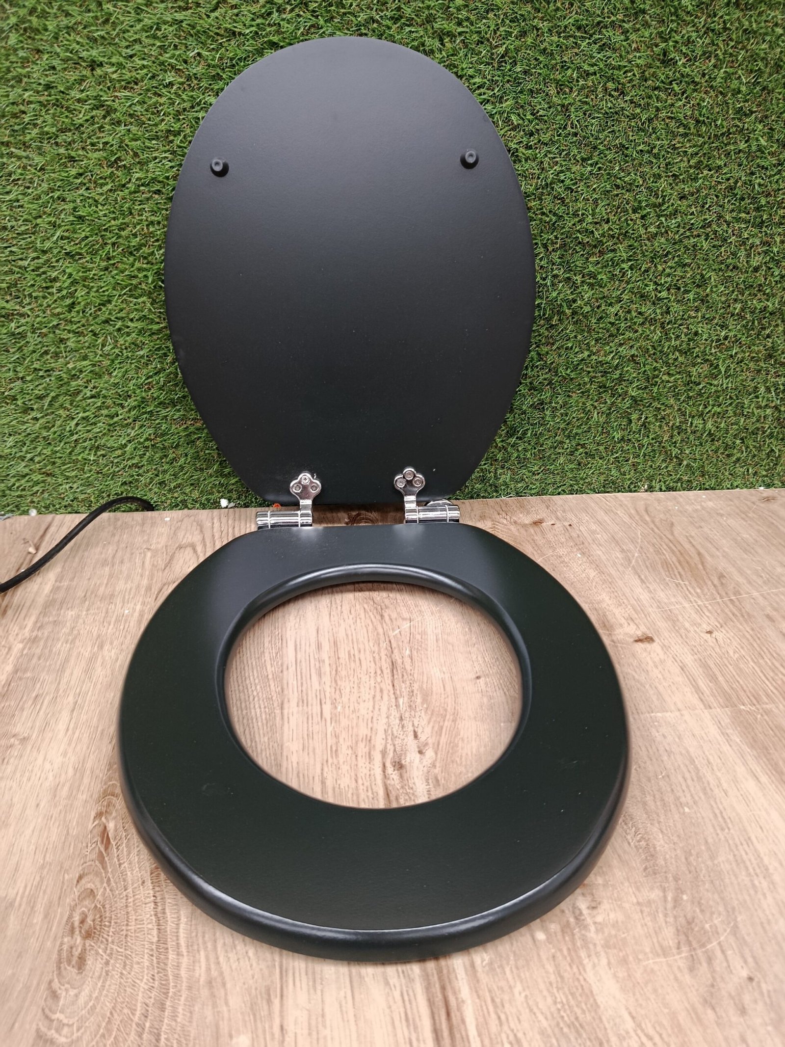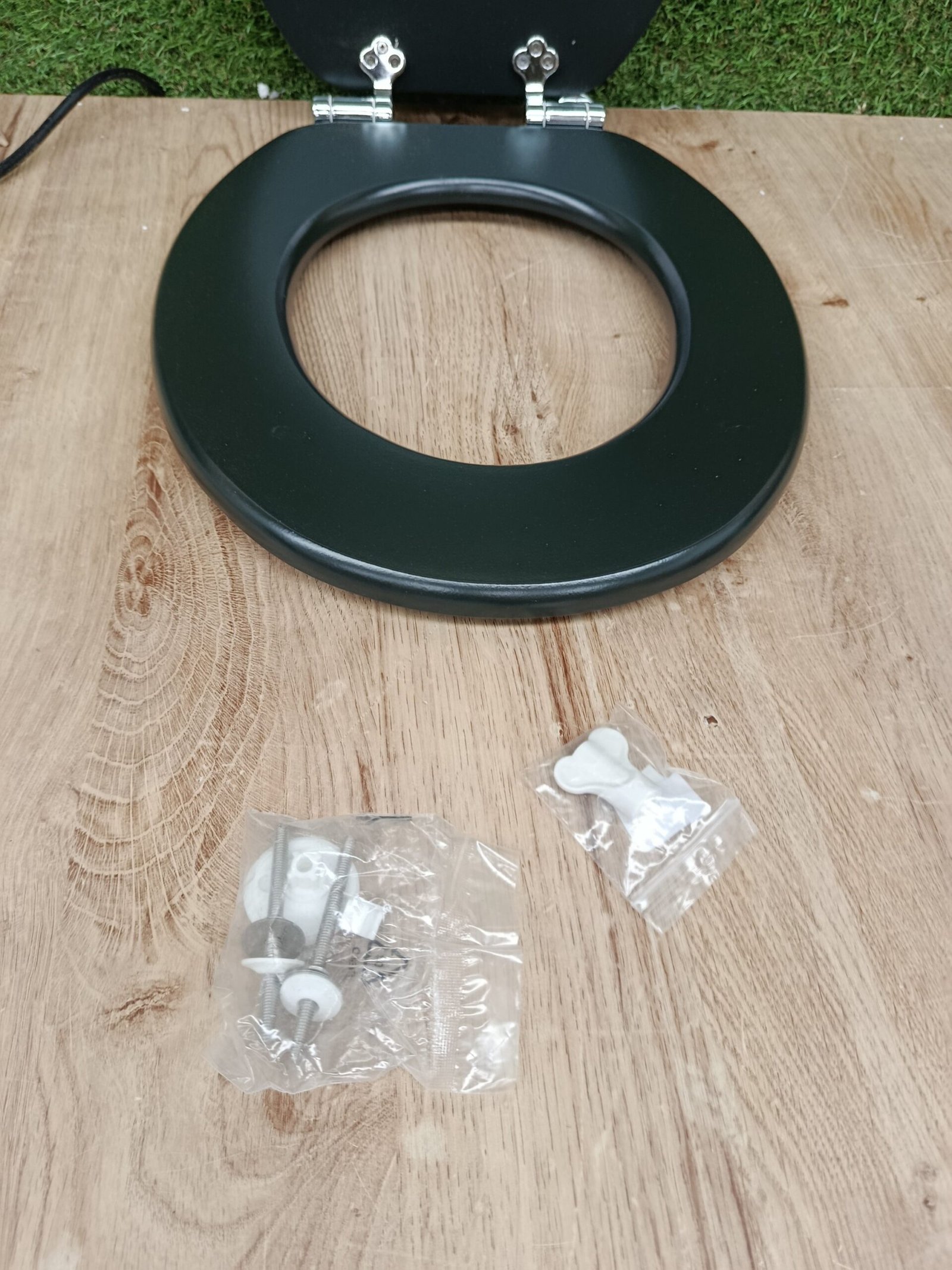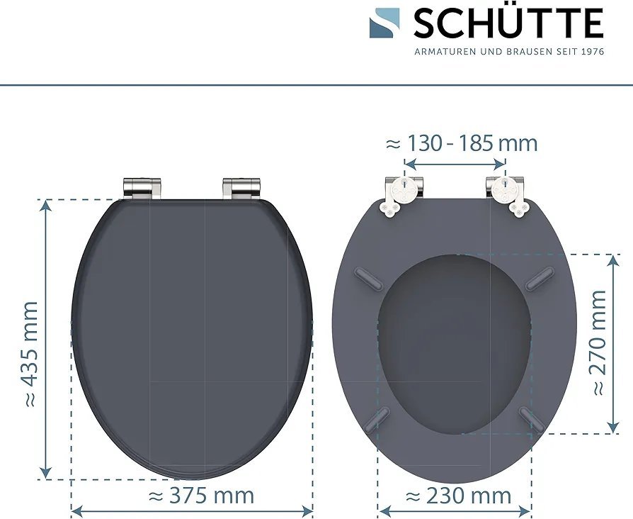1 asiento de inodoro, amortiguador de distancia, 2 bisagras de fijación de metal, instrucciones de montaje: 370 x 55 x 450 mm), instrucciones de montaje (idioma español no garantizado)