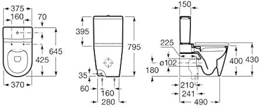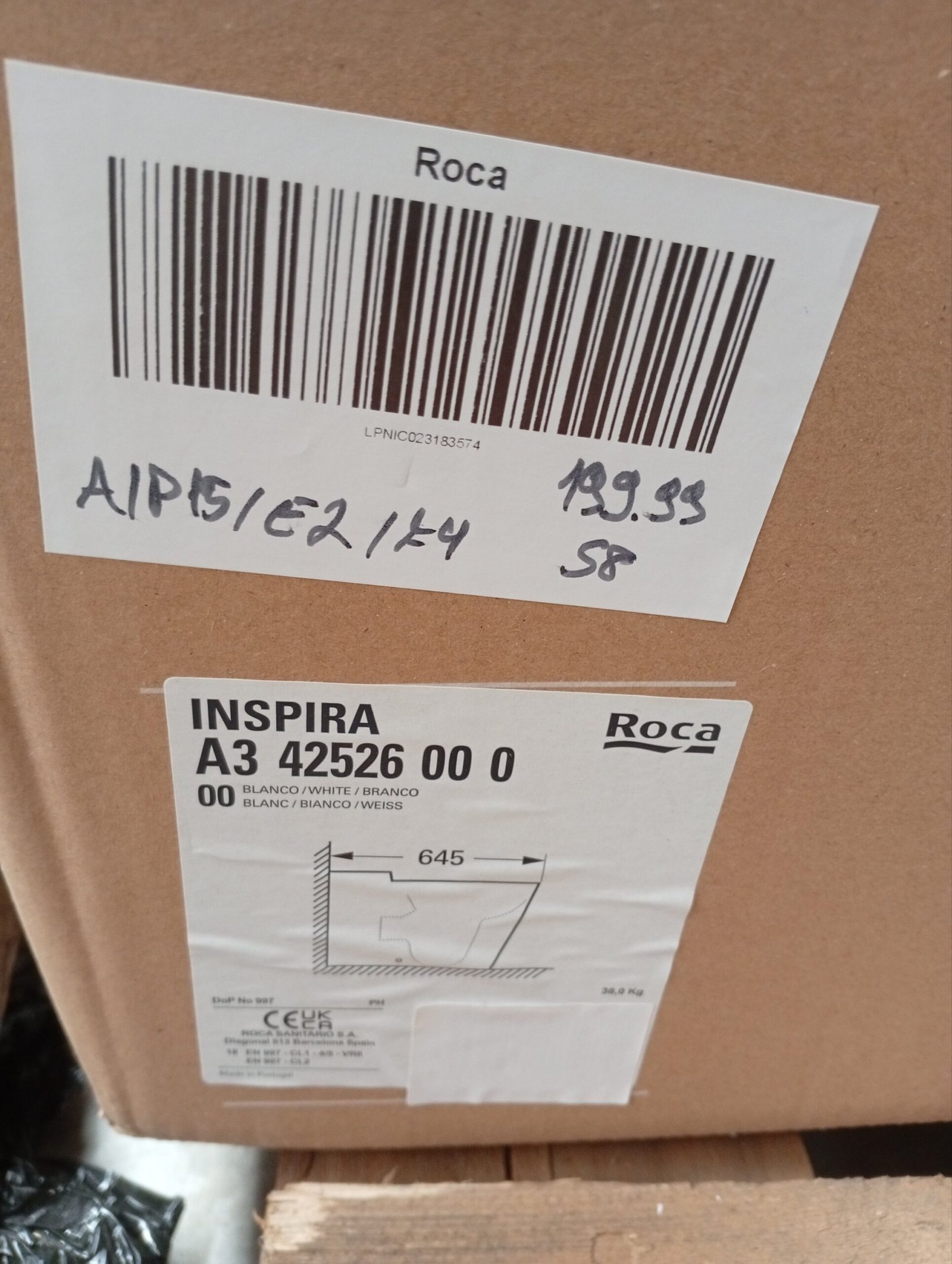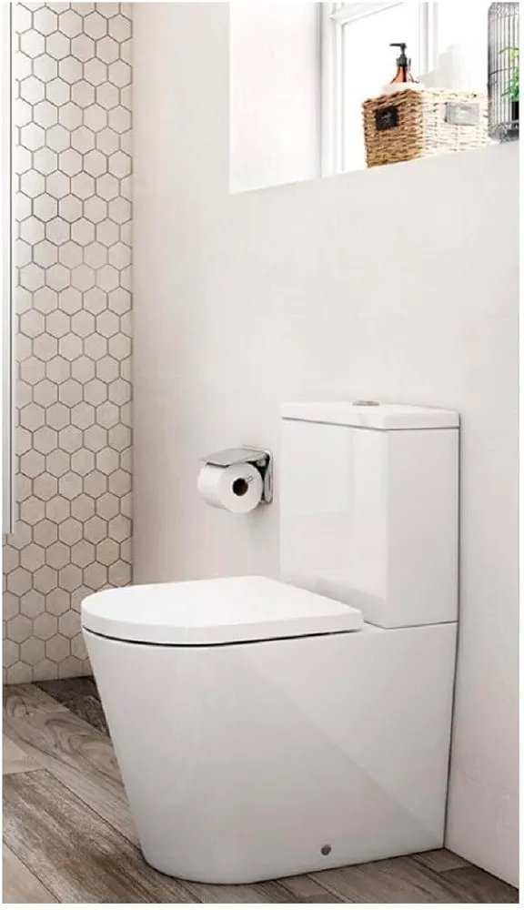 Roca,INSPIRA,ROUND – Taza Rimless adosada a pared con salida dual para inodoro de tanque bajo,Blanco,375mm x 645mm x 795mm,A342526000