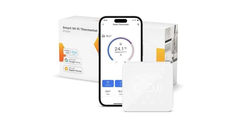 Termostato inteligente Meross MTS200, en perfecto estado. Funciona con WiFi y es compatible con Google Home y Apple Home.
