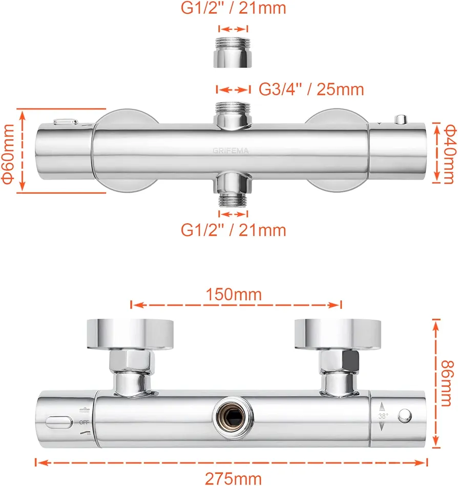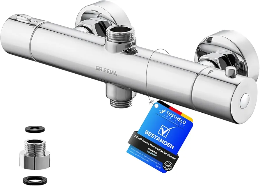 GRIFEMA Berlin – Termostato Para Columna De Ducha, Grifo De Termostática, Cromo (Exclusivo en Amazon), Plateado
