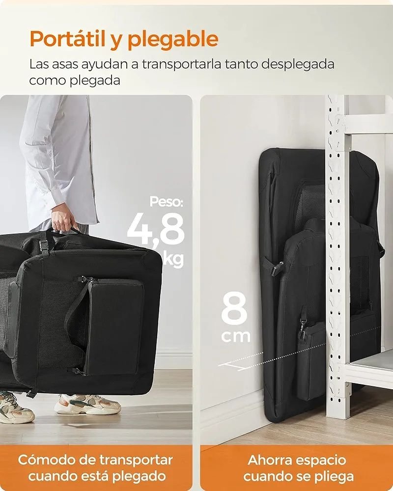 Esta bolsa de transporte es cómoda de llevar a cualquier parte gracias a su asa. Una vez plegado, mide 91 x 63 x 8 cm para que quepa en el maletero del coche o en un rincón