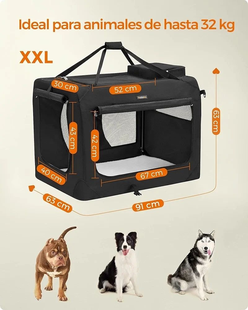 Feandrea Transportín para Gatos y Perros, Plegable, Tamaño XXL, Tela Oxford, Malla Transpirable, Portátil, Marco Metálico, con Asas y Bolsillos, 91 x 63 x 63 cm, Negro PDC90H