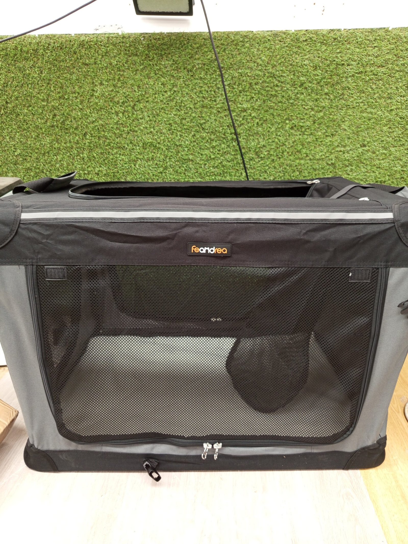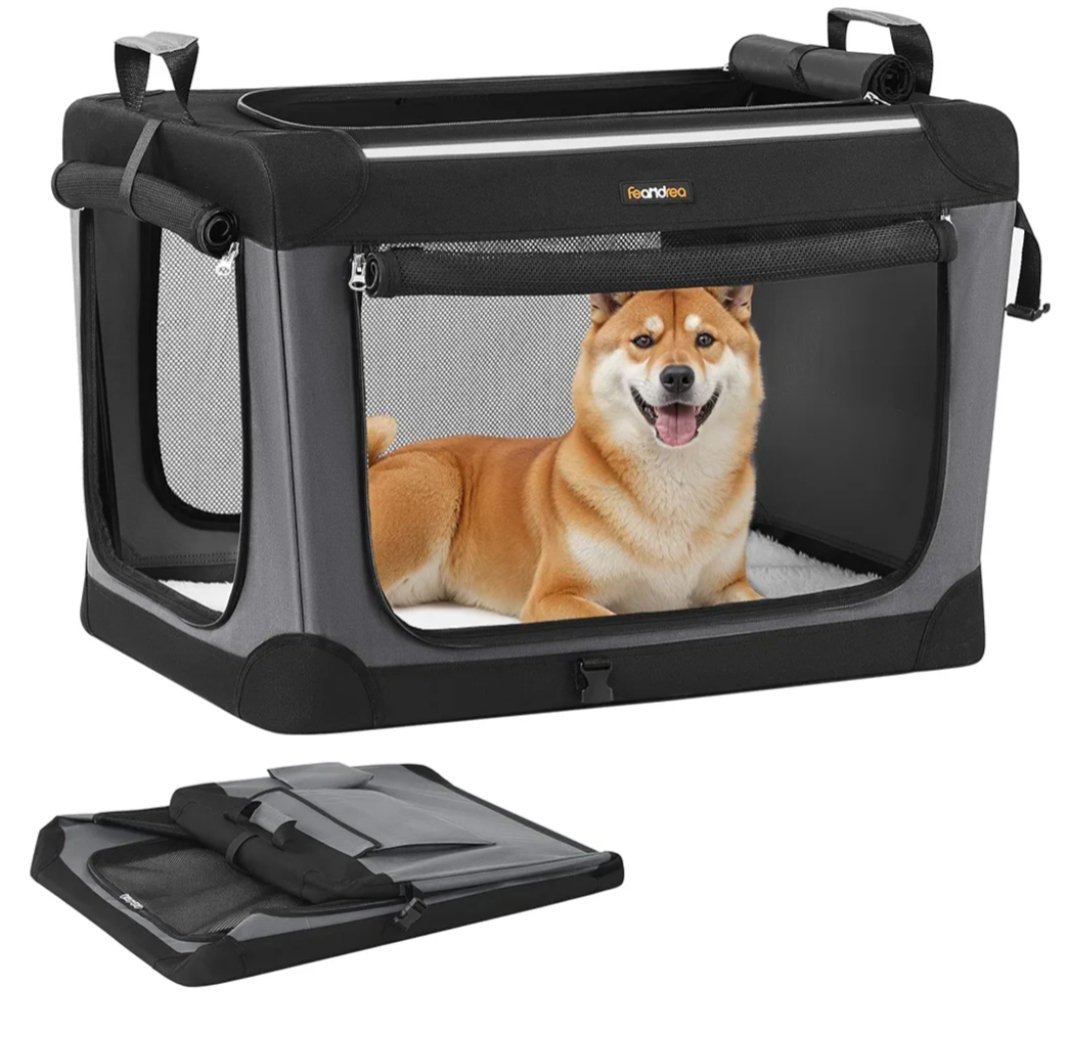 Transportin plegable Feandrea para perros, jaula portátil de viaje para perros medianos, 76,2 x 53,4 x 53,4 cm, de tela Oxford con puertas de malla y bolsillo de almacenamiento, color negro tinta PDC017B01
