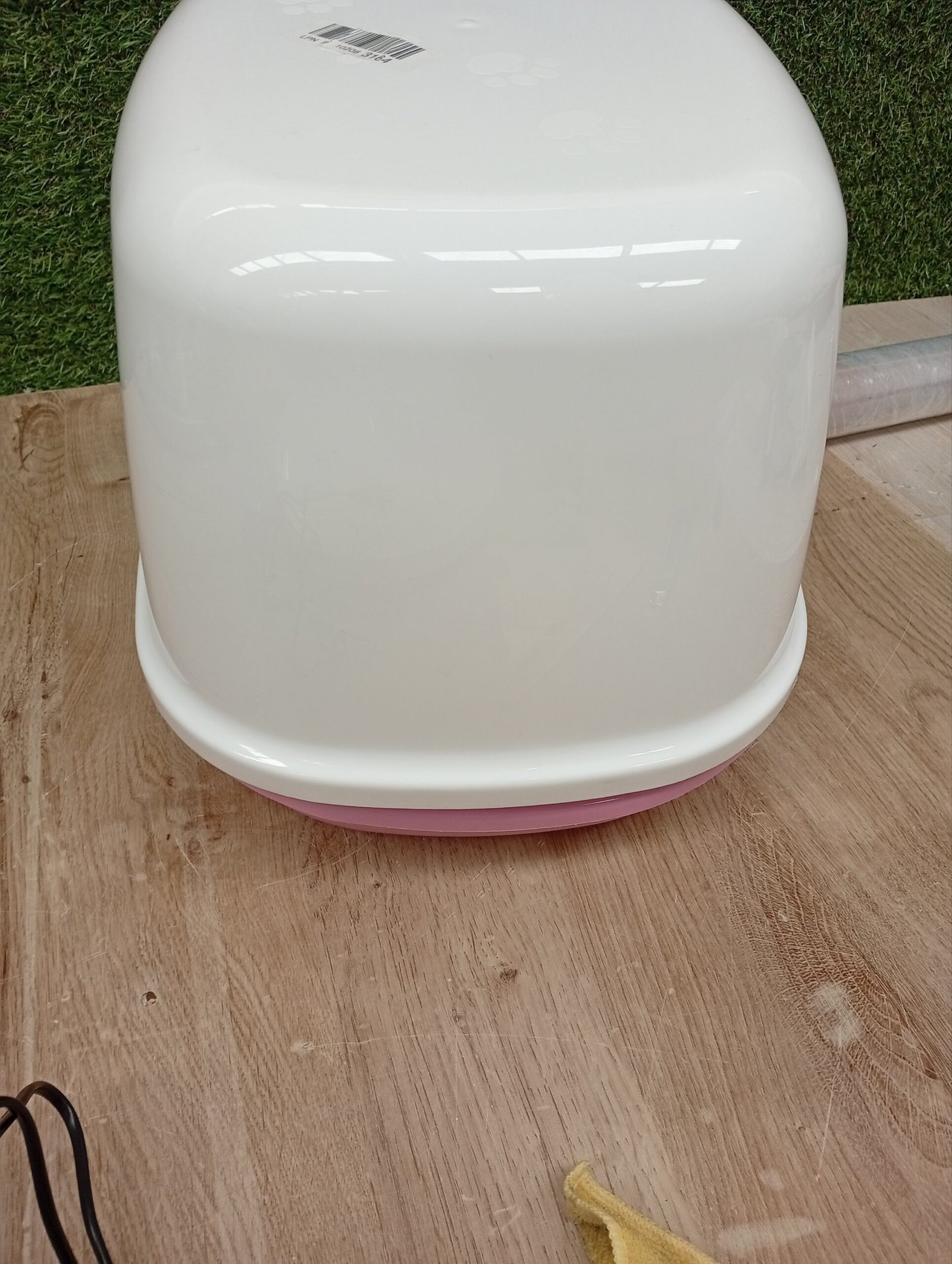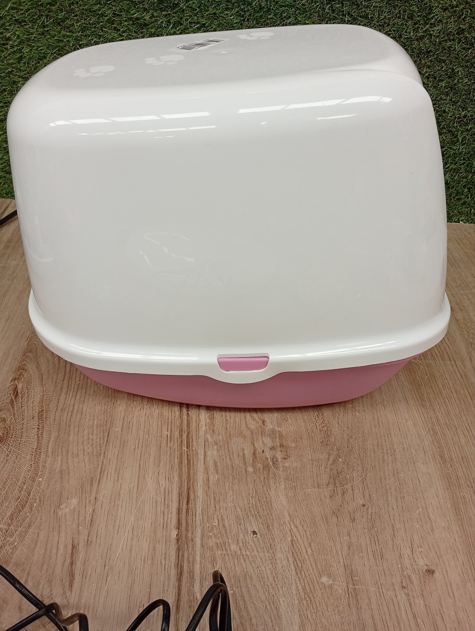 Caja de arena para gatitos con solapa de plástico con bisagra.