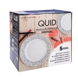 Quid Festival Vajilla Porcelana 18 Piezas – 6 Personas Porcelana Apto Microondas Apilable