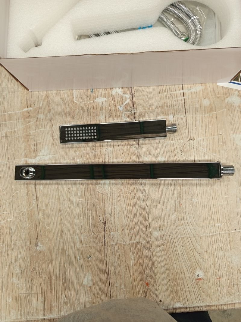 Materiales: Rociador de acero inoxidable, monomando de latón, alcachofa de mano de PVC, flexo de acero inoxidable.