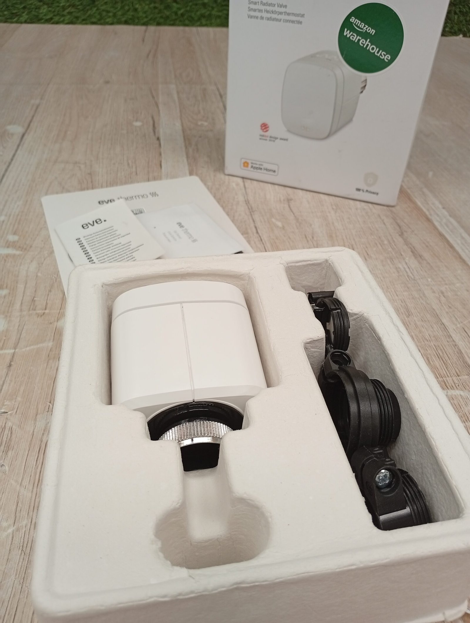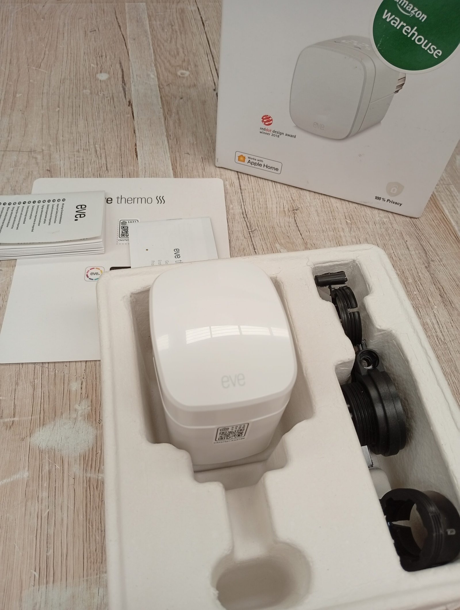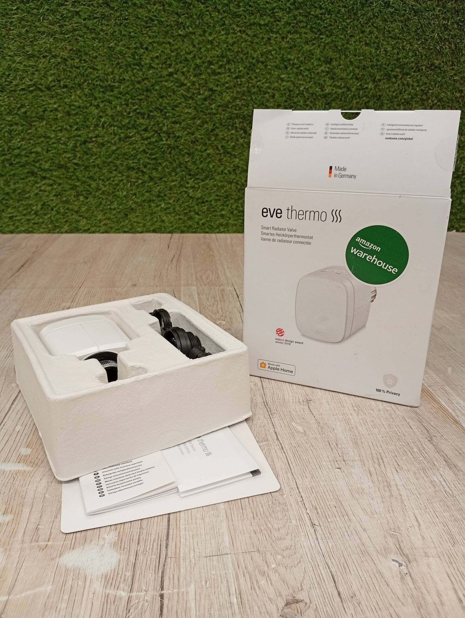 Eve Thermo – Válvula Inteligente de radiador con Pantalla LED, Control automático de Temperatura, no Necesita Pasarela, Controles táctiles Integrados, Bluetooth, Apple HomeKit, Fabricada en Alemania