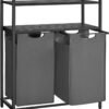 2 cestos, organización por tipos] Este cesto para la colada ofrece una capacidad total de 92 L (46 L para cada bolsa); el diseño de 2 compartimentos ayuda a organizar los artículos por tipos o a dividir lo claro de lo oscuro Robusto, estable y resistente] El tubo de acero de 2 cm y el tablero MDF hacen que este cesto sea más robusto para soportar hasta 34 kg por estante; cada bolsa de tela Oxford es resistente al agua; los 4 pies ajustables lo mantienen equilibrado