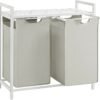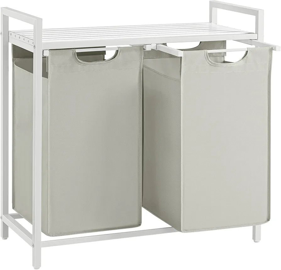 VASAGLE Cesto para Ropa Sucia, Cesta Colada, 2 Bolsas de Tela Oxford Extraíble y Desmontable, Estante, Marco Metálico, 2 x 46 L, 73 x 33 x 72 cm, Blanco Crema y Blanco Mate BLH201W01