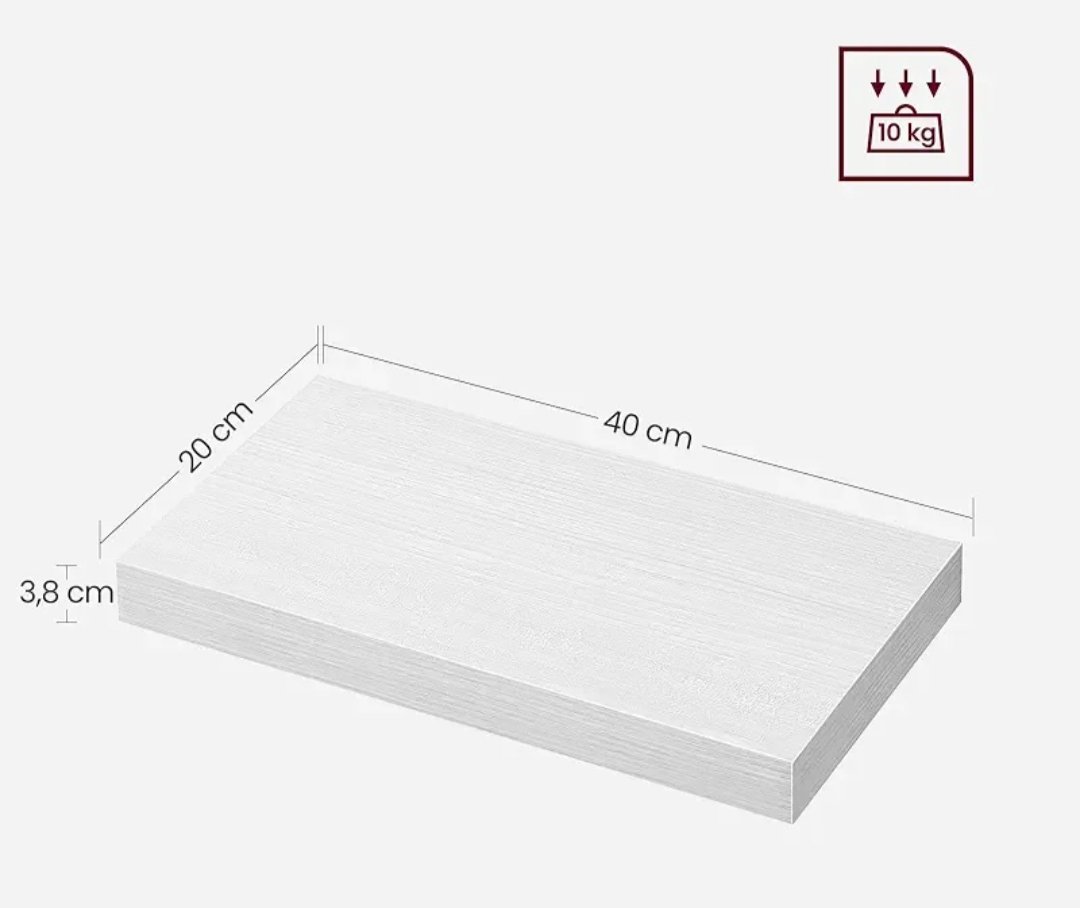 VASAGLE Estante de Pared, Estante Flotante, 20 x 40 x 3,8 cm, Balda de Pared para Marcos de Fotos, Decoración, para Salón, Estudio, Cocina, Blanco Arce LWS024W44